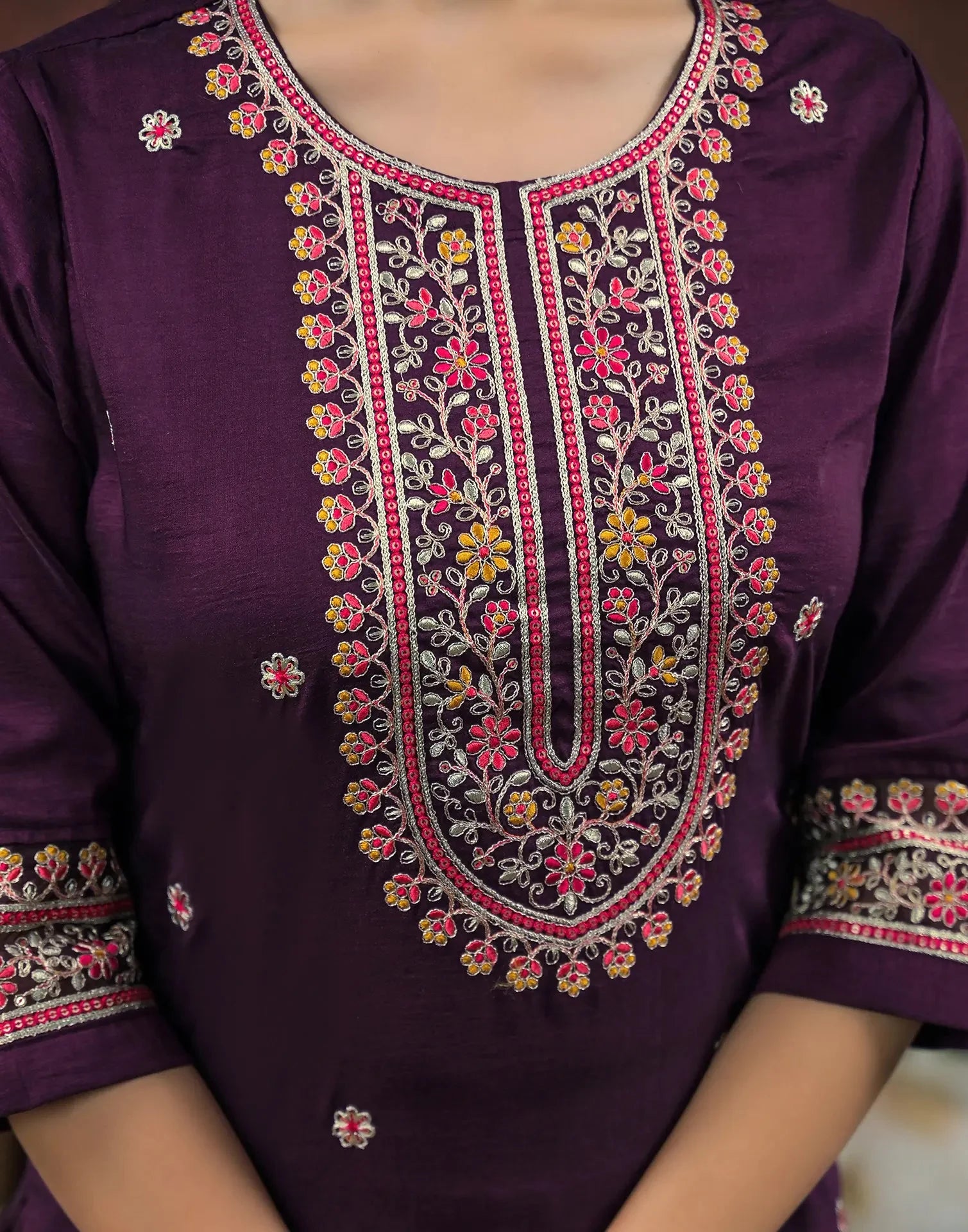 Chinnon Embroidered Round Neck Straight Kurta with Pant & Dupatta