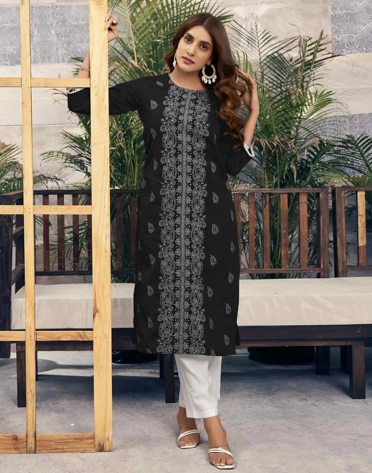 Rayon Embroidered Straight Kurti