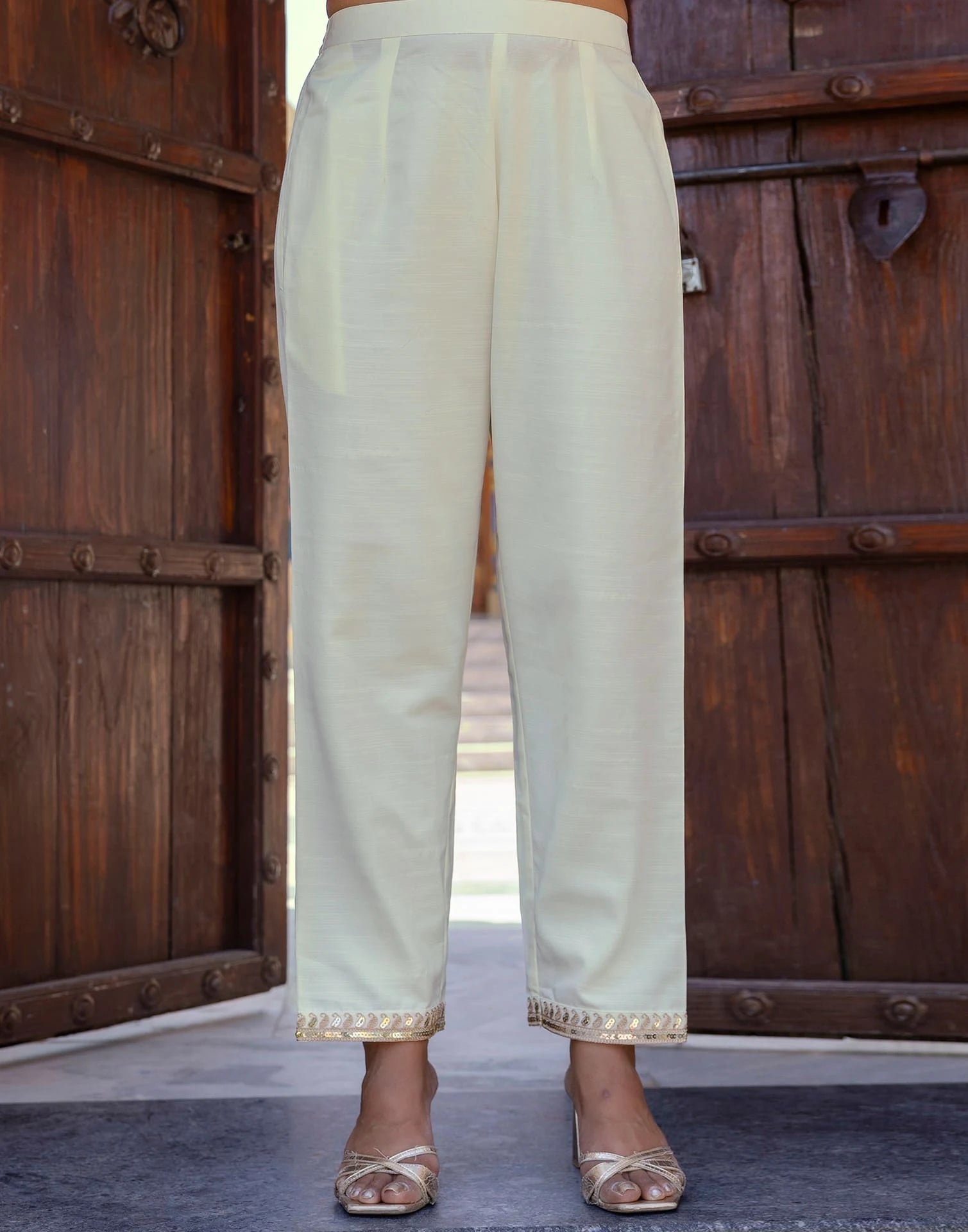 Cotton Blend Sequence, Embroidery Work and Lace Straight Kurta with Pant & Dupatta