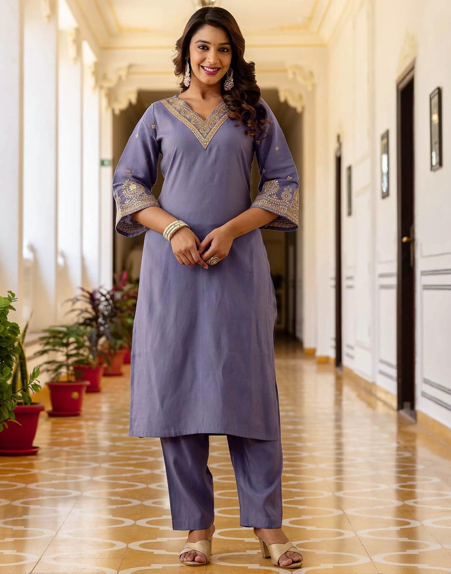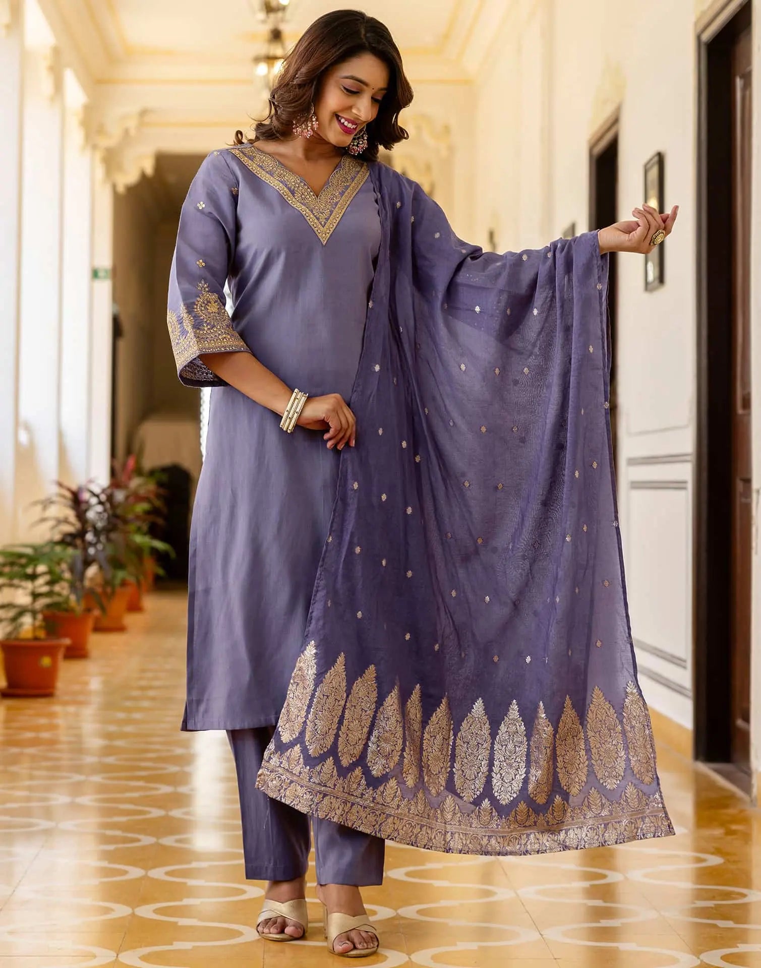 Silk Blend Embroidery and Sequins Work Straight Kurta with Pant & Dupatta