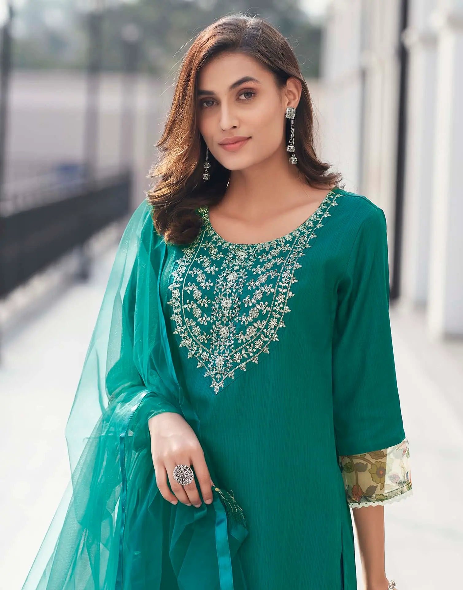Silk Blend Sequence Embroidery Work and Lace Straight Kurta with Pant & Dupatta