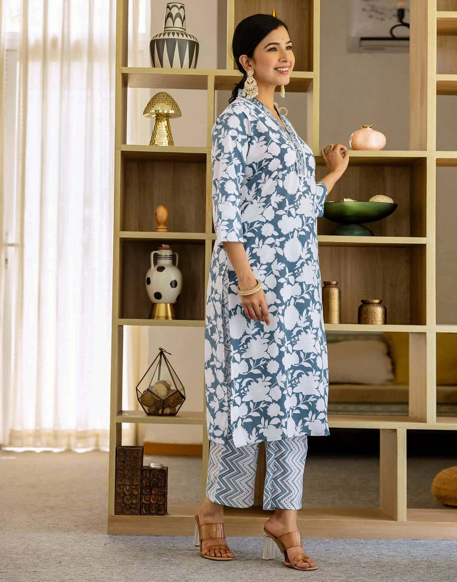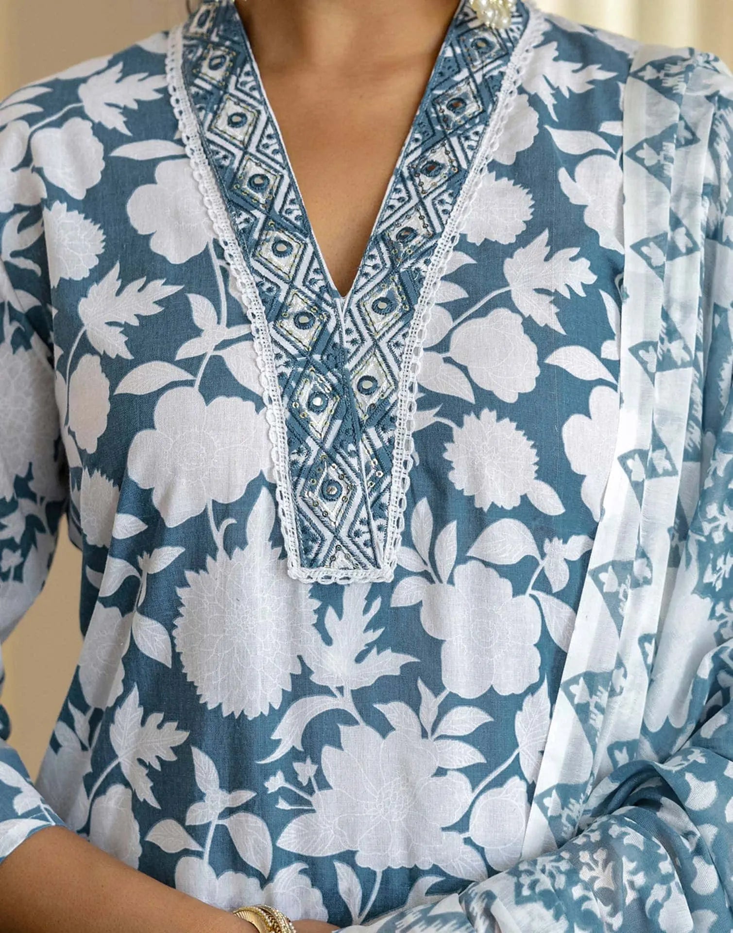 Cotton Printed and Embroidery Lace Anarkali Kurta with Pant & Dupatta