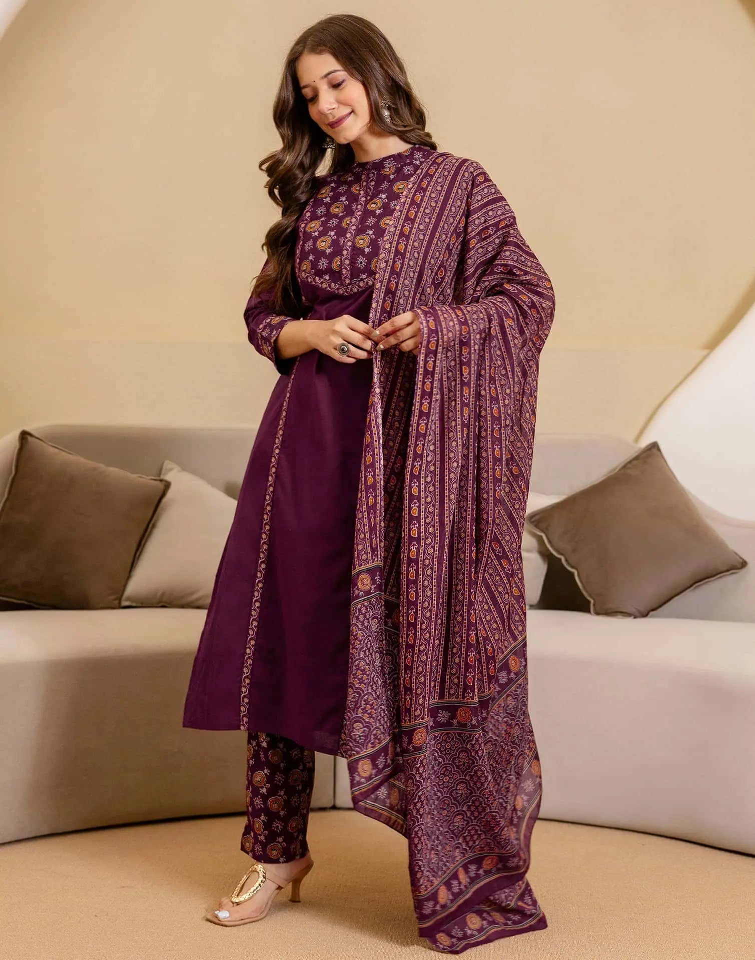 Cotton Printed Straight Kurta with Pant & Dupatta