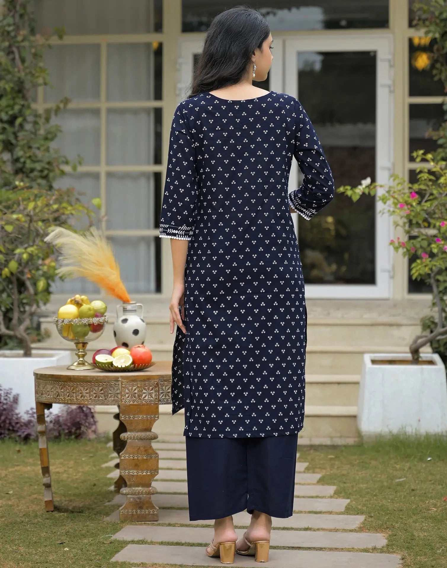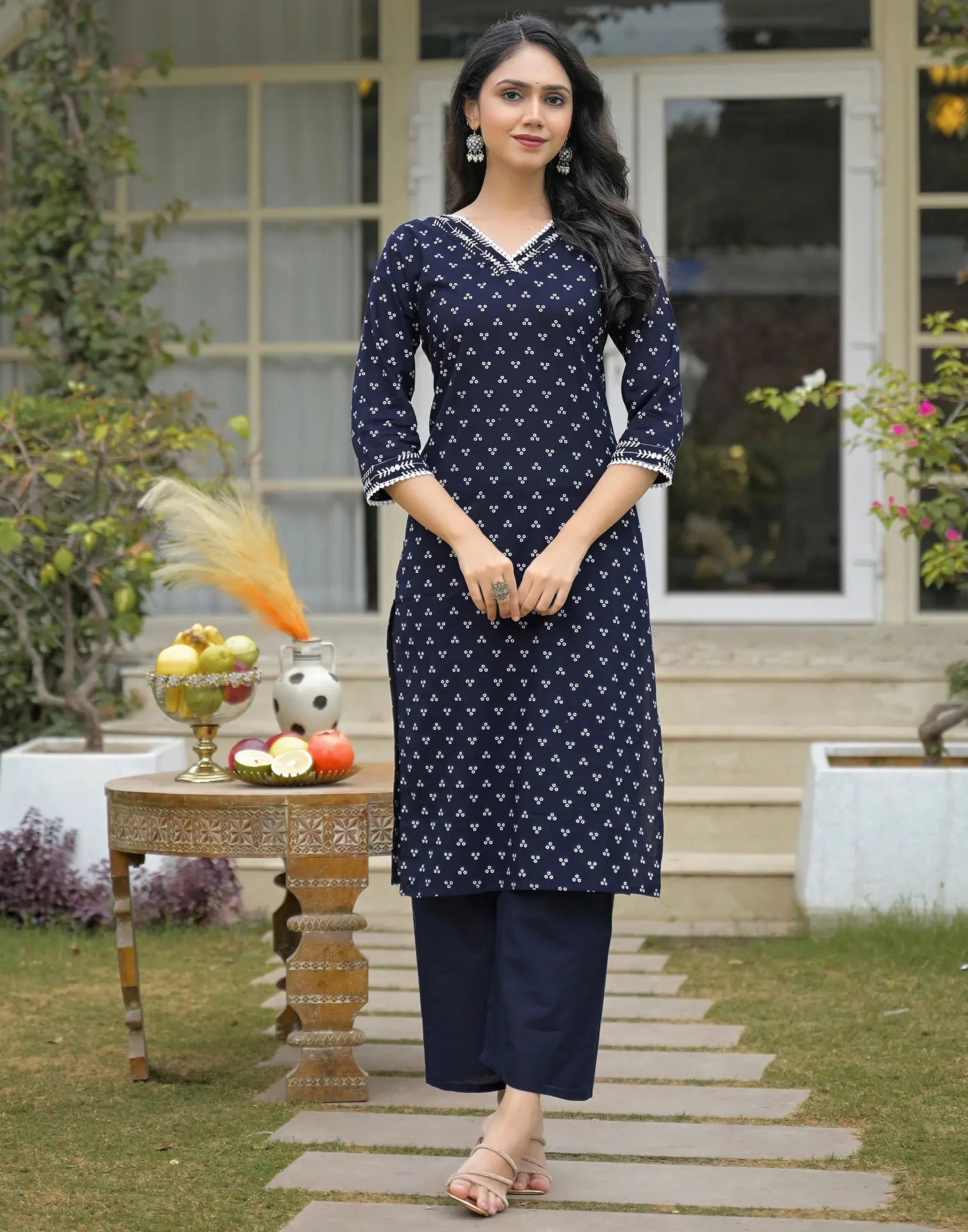 Cotton Printed V-Neck Straight Kurta with Pant & Dupatta