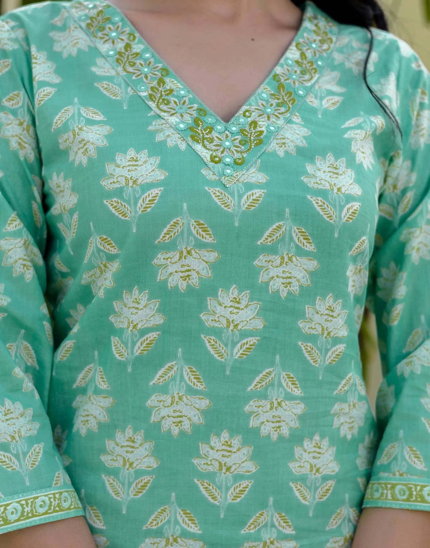 Cotton Printed, Embroidery and Mirror Work, Lace Straight Kurta with Pant & Dupatta