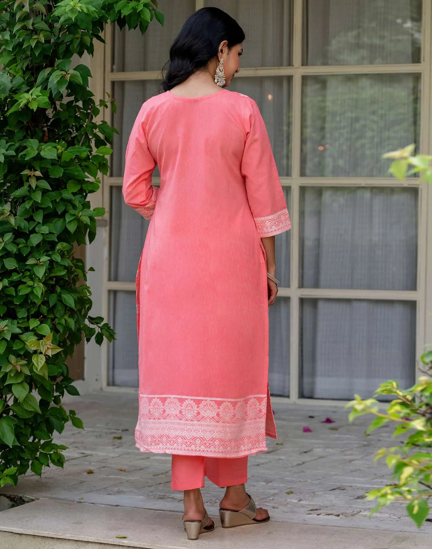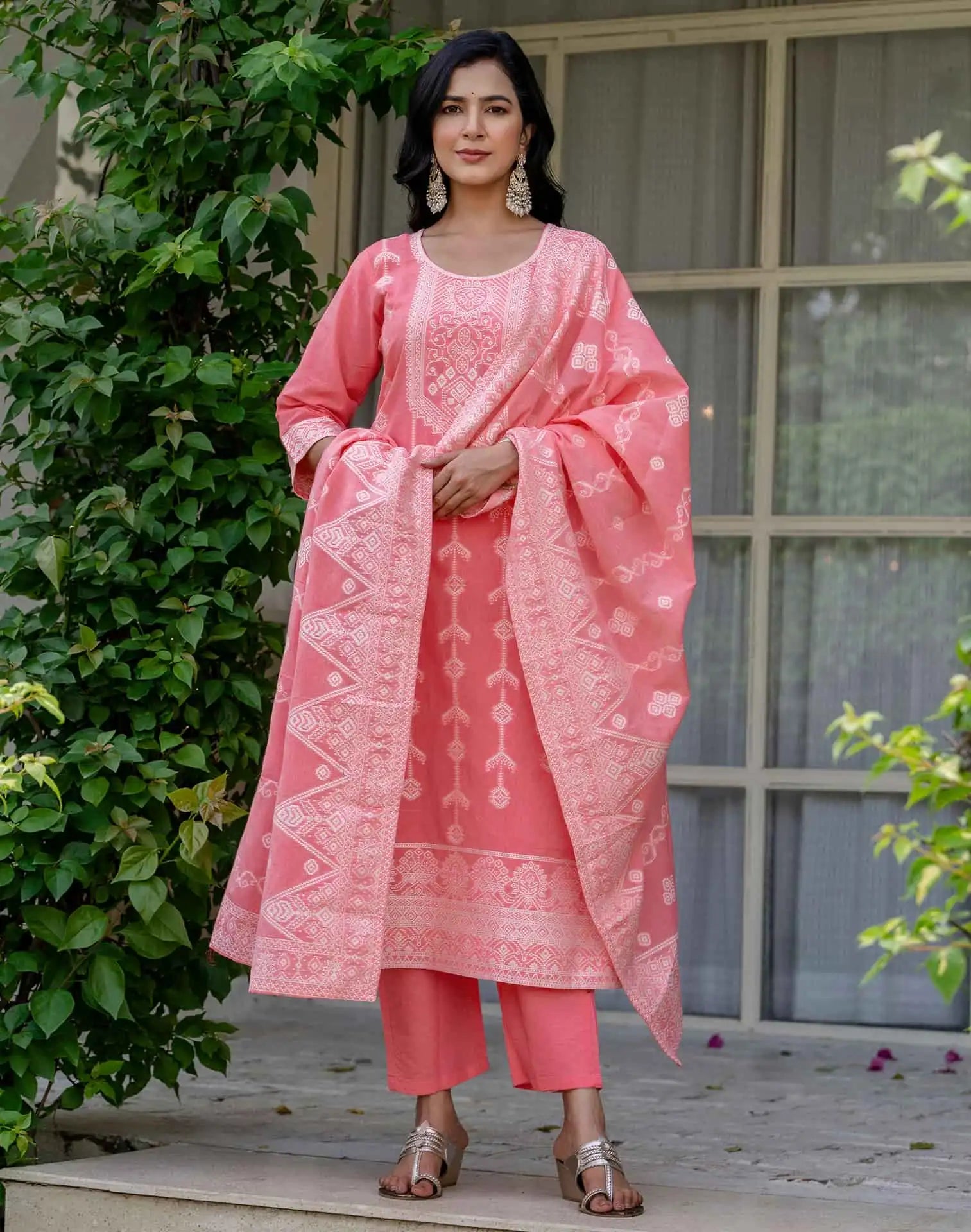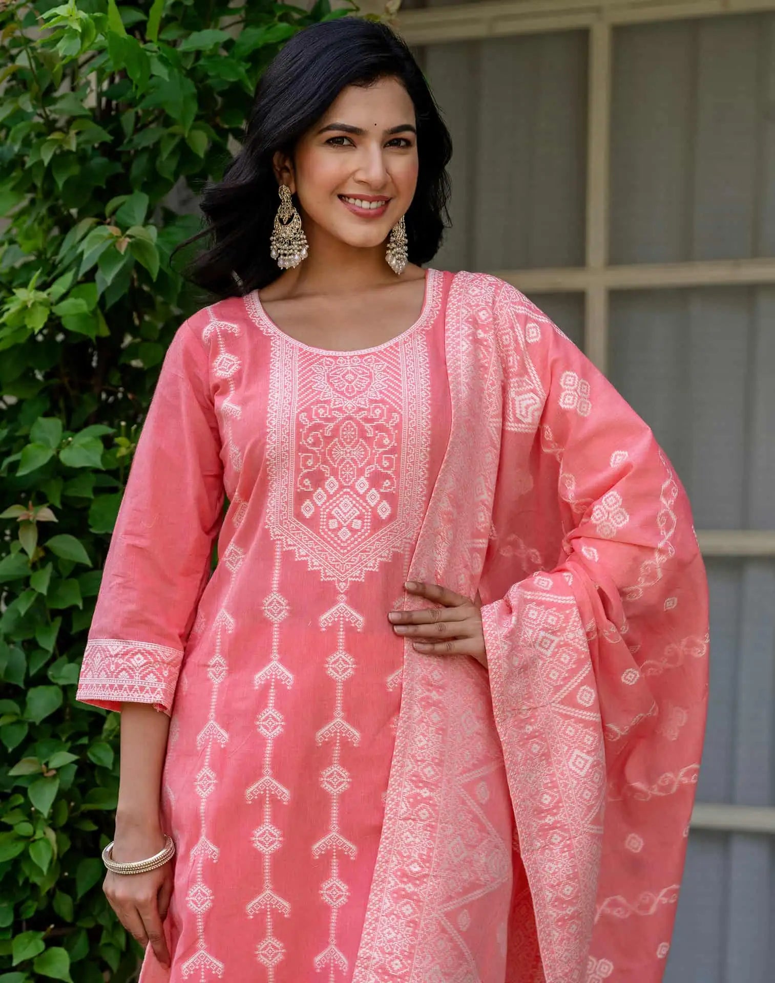 Cotton Woven Design Straight Kurta with Pant & Dupatta