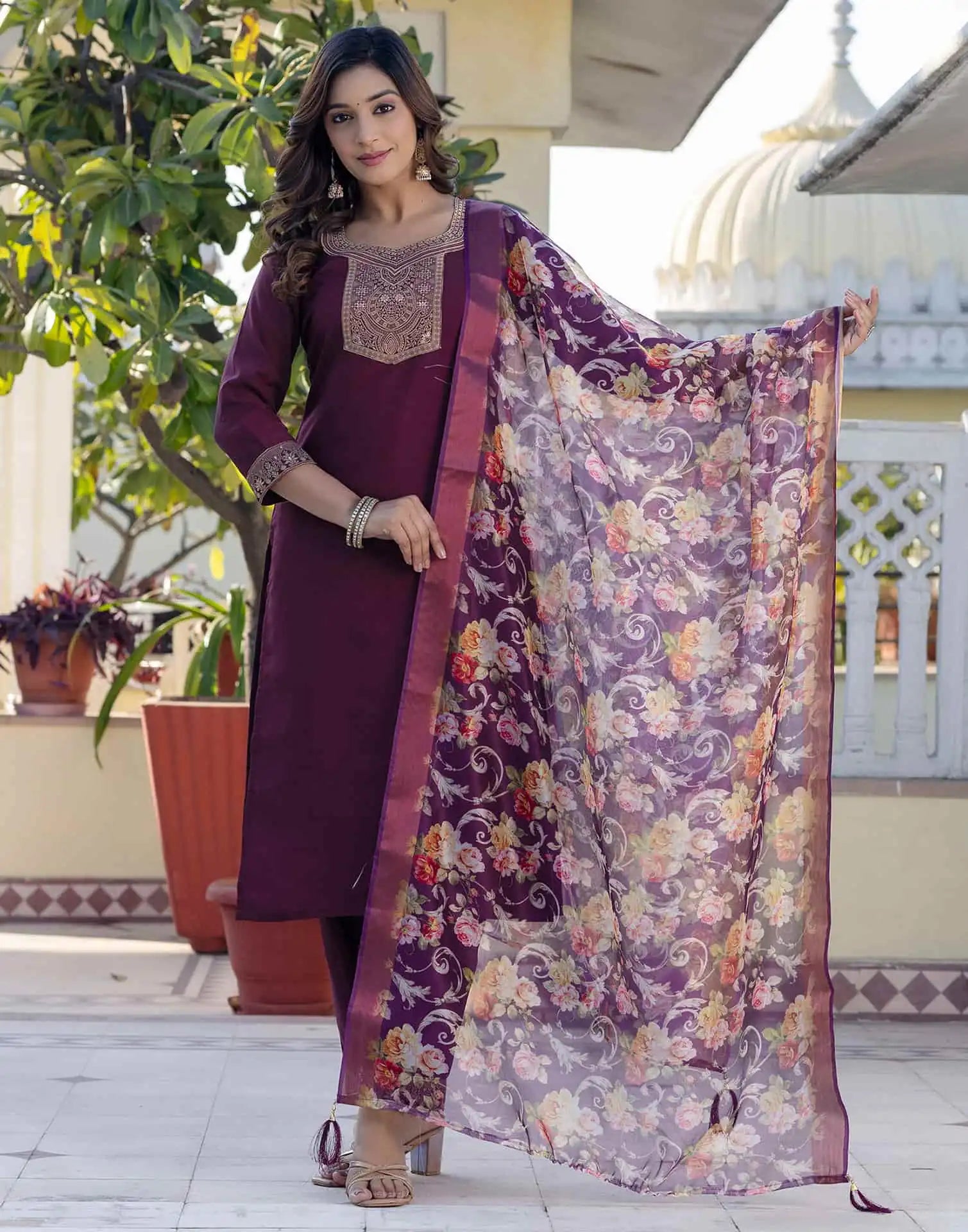 Silk Blend Weaving Straight Kurta with Pant & Dupatta