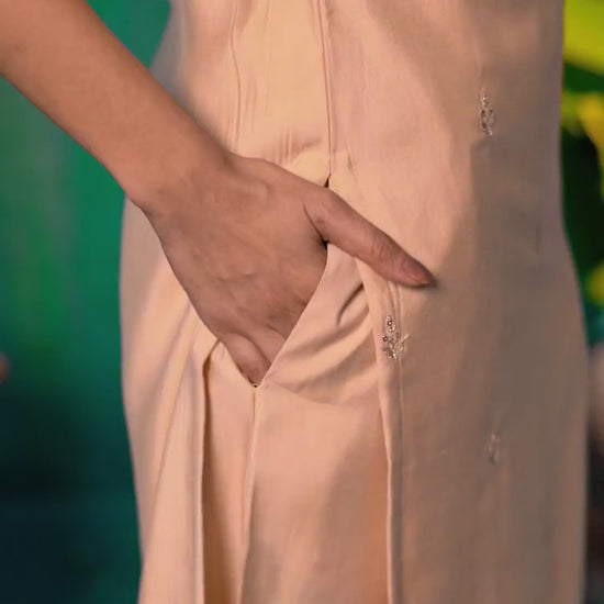 Bring elegance to every occasion with this Beige Viscose Chanderi kurta set. Featuring Sequence And Embroidery on the kurta and a Round Neck, it radiates traditional charm. Styled with Pant With Pocket and dupatta, this outfit is ideal for Festive Wear. Its soft & breathable fabric ensures breathability and comfortable wear, while the dupatta adds a touch of grace. Matching Bottoms, Ethnic Wear for Women, Comfortable Fit.