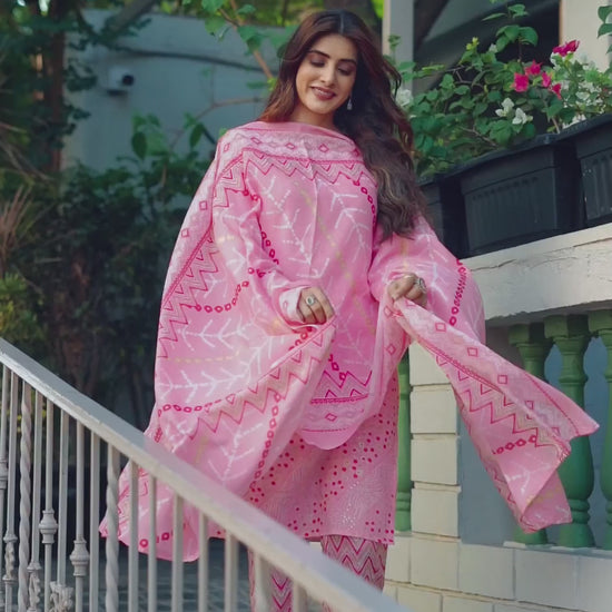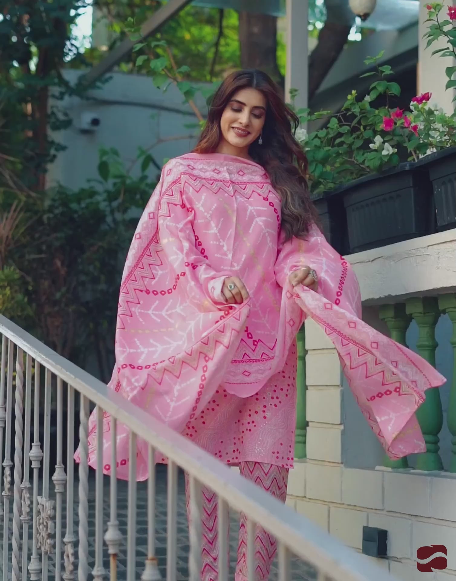 Crafted in Cotton Blend with exquisite Printed, this Pink kurta set is an essential for your ethnic wardrobe. The kurta comes with a Round Neck, paired with Pant and dupatta for a complete look. Ideal for Everyday Wear, it ensures all-day comfort and premium fabric. A perfect choice for festive wear and traditional outfit lovers. Festive Wear, Elegant Dupatta, Ethnic Wear for Women.