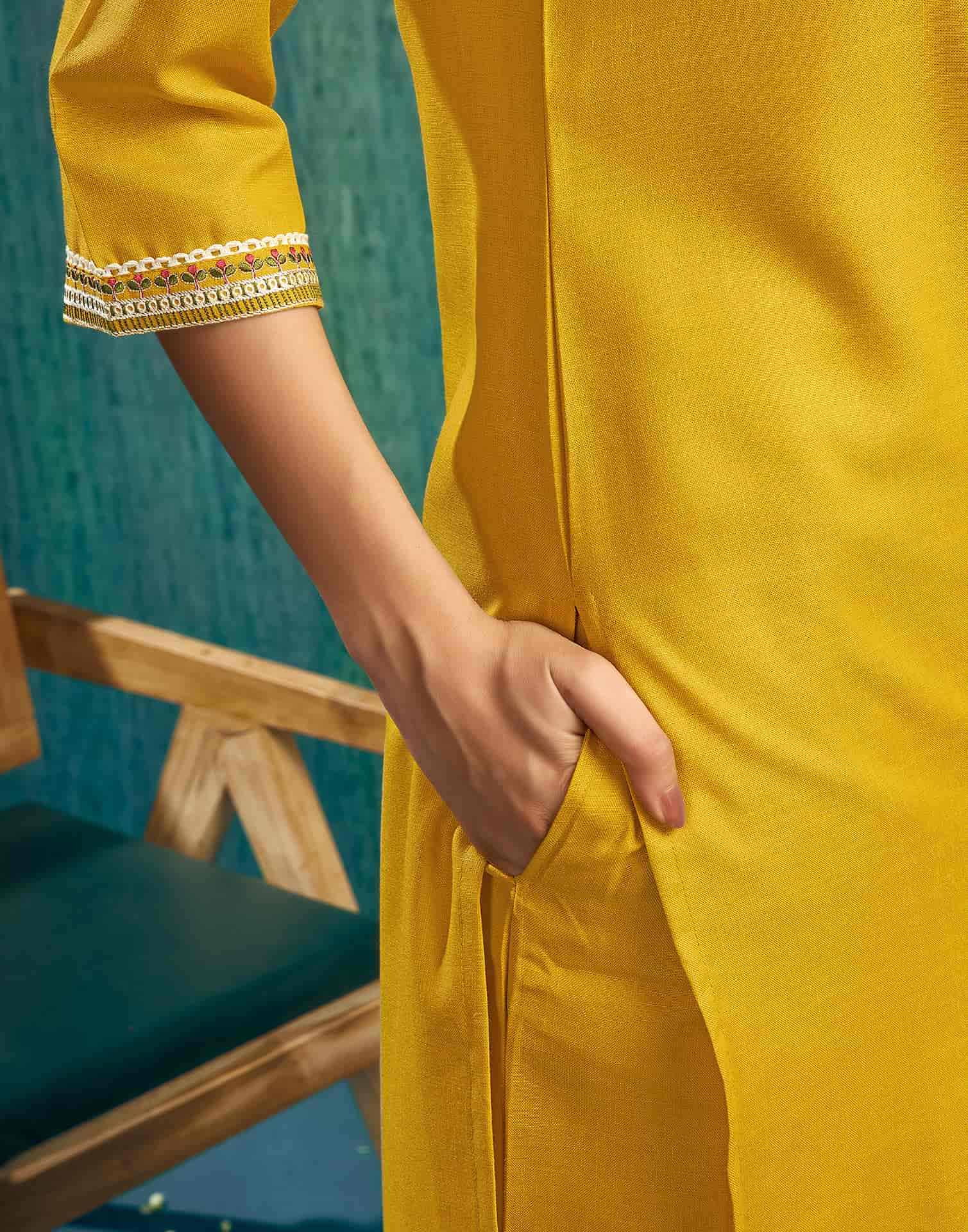 This Yellow Cotton Blend kurta set with Embroidered is crafted for women who love Indian wear with a modern twist. The kurta’s Boat Neck and graceful cut enhance its style, while Pant and dupatta complete the ensemble. Designed for Festive Wear, it promises lightweight fabric, ease of movement, and lasting appeal. Soft & Breathable Fabric, Elegant Dupatta, Traditional Outfit.
