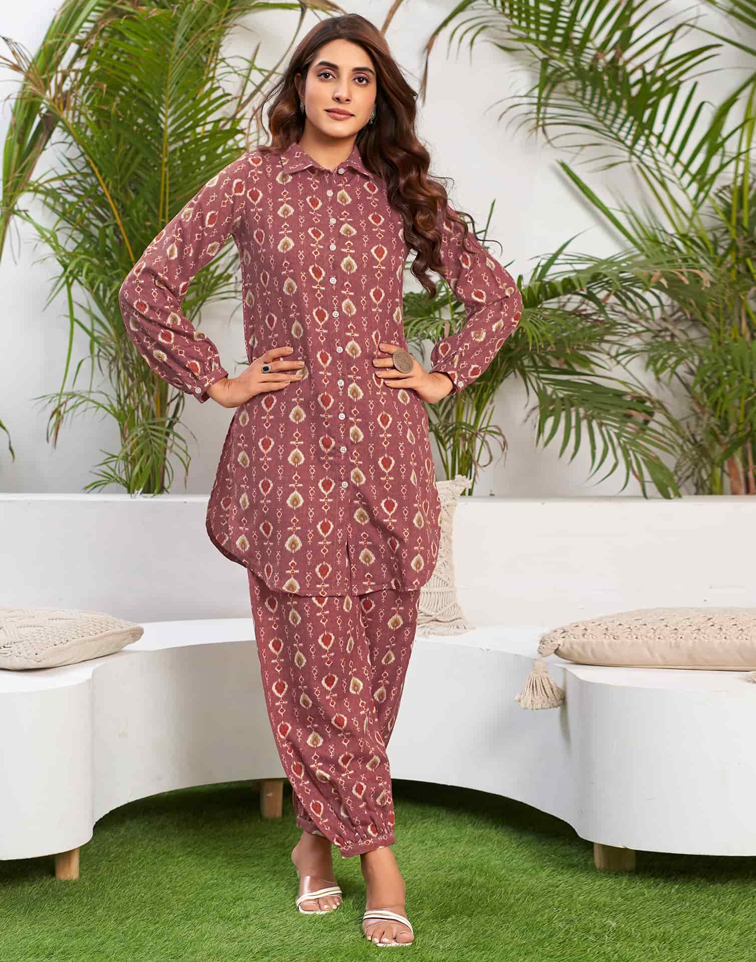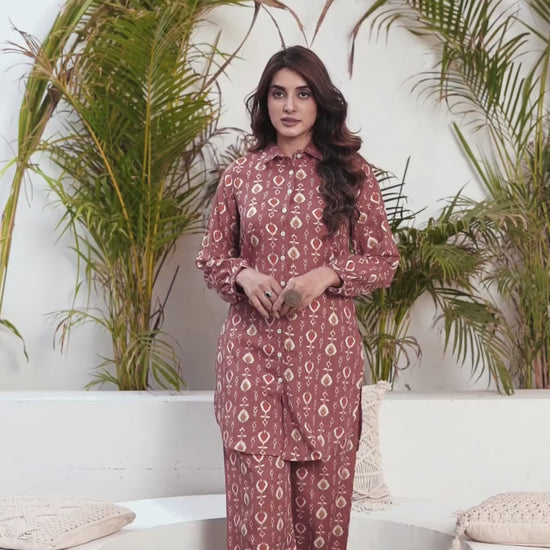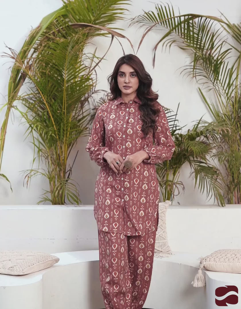 Cotton Blend Printed Collared Neck Co-ord Set