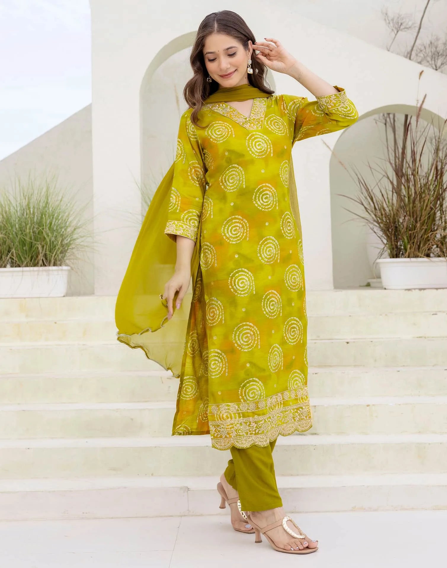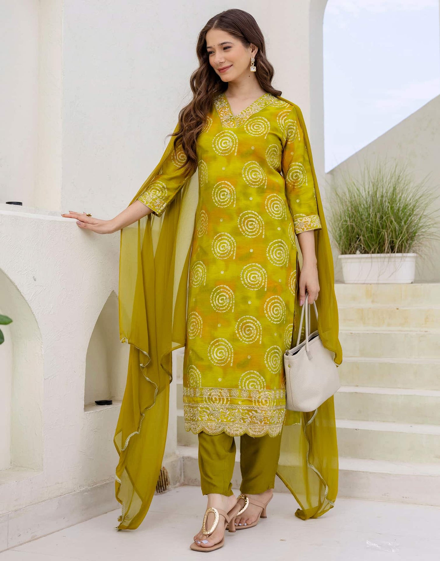 Cotton Blend Printed Straight Kurta with Pant & Dupatta
