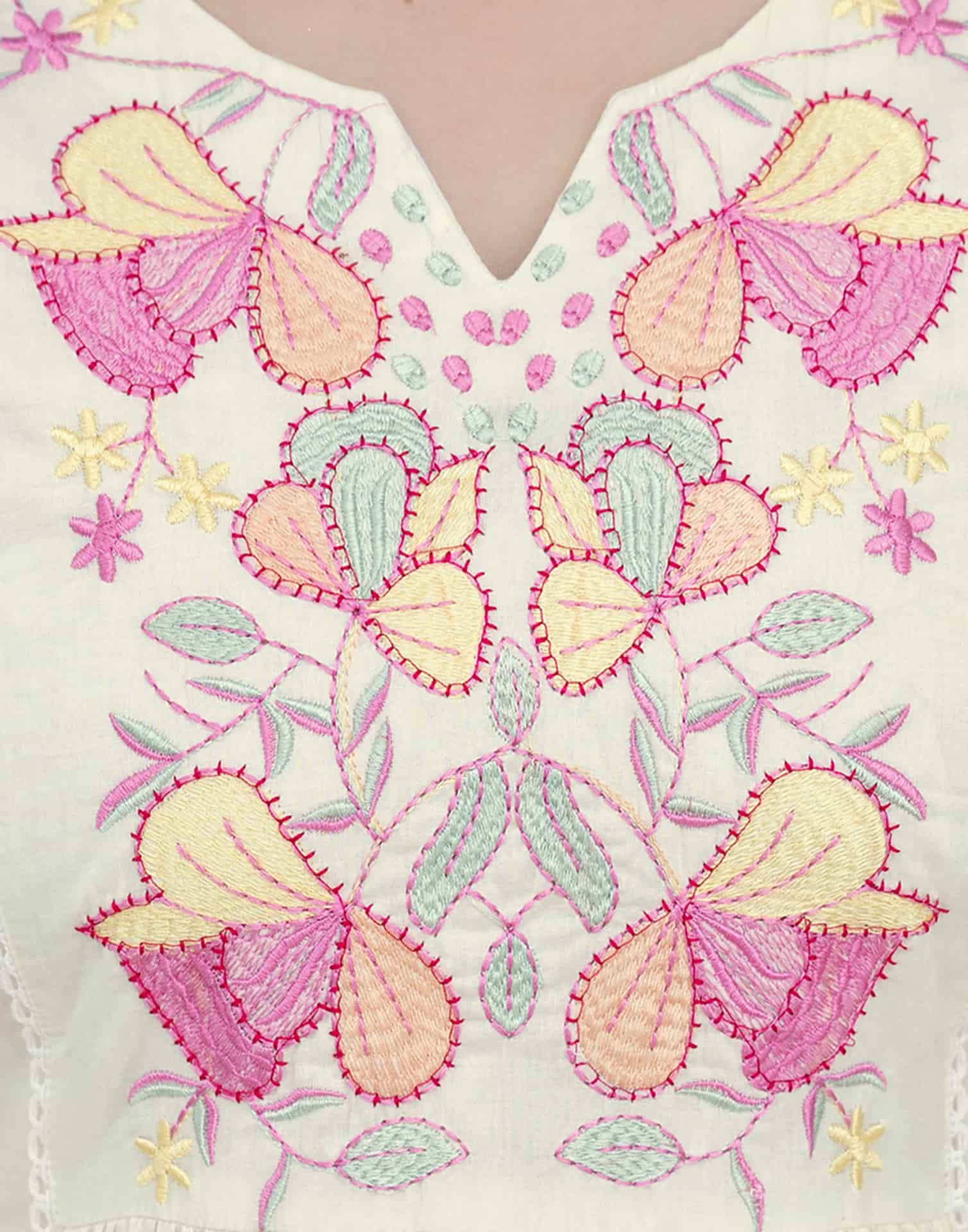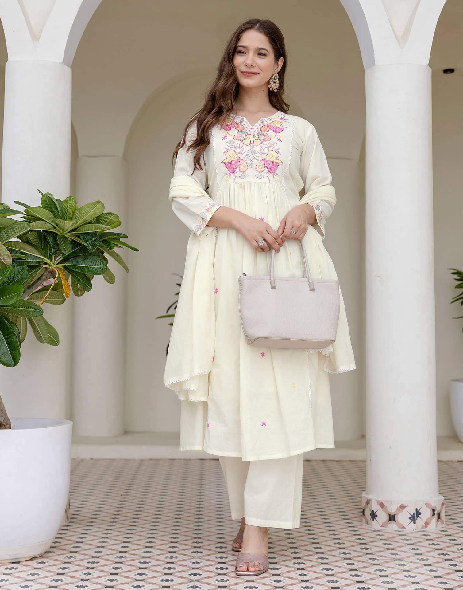 Cotton Embroidered A-line Kurta with Pant & Dupatta