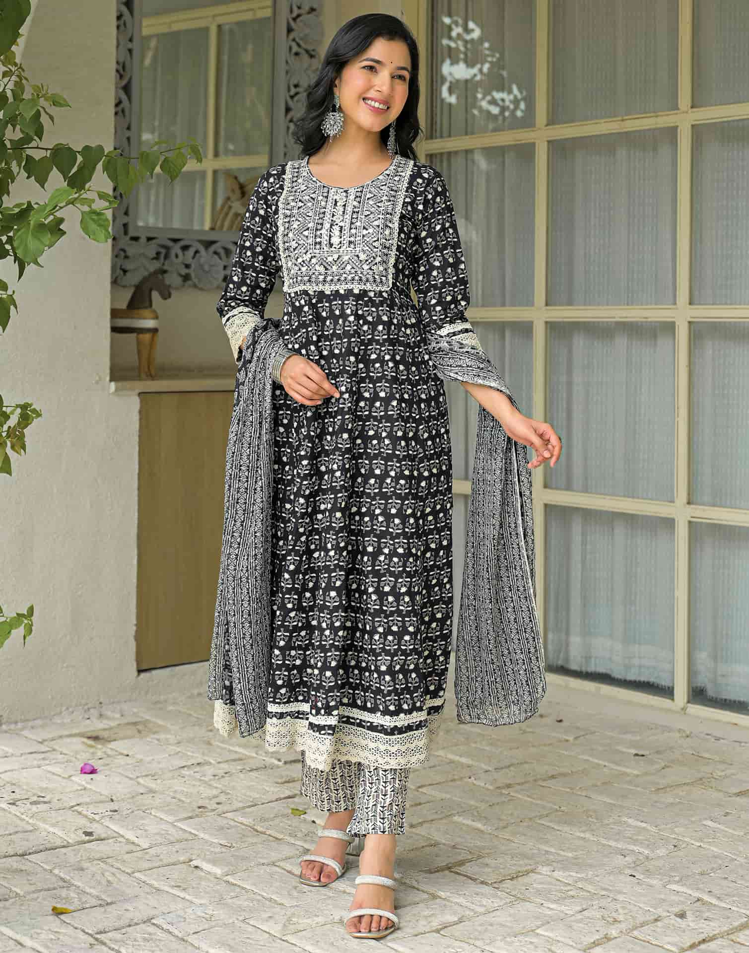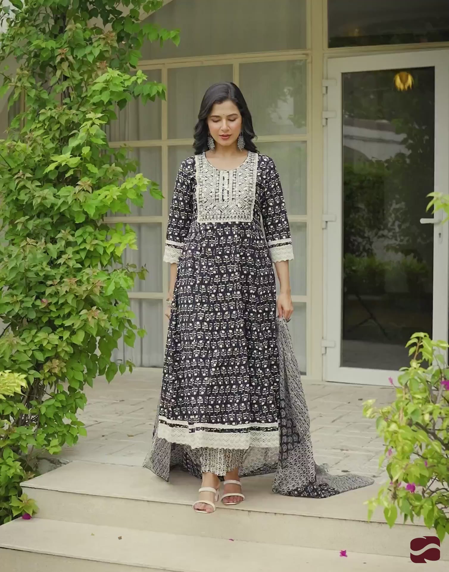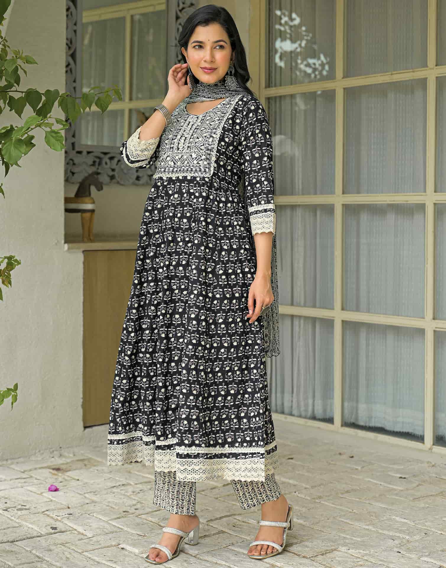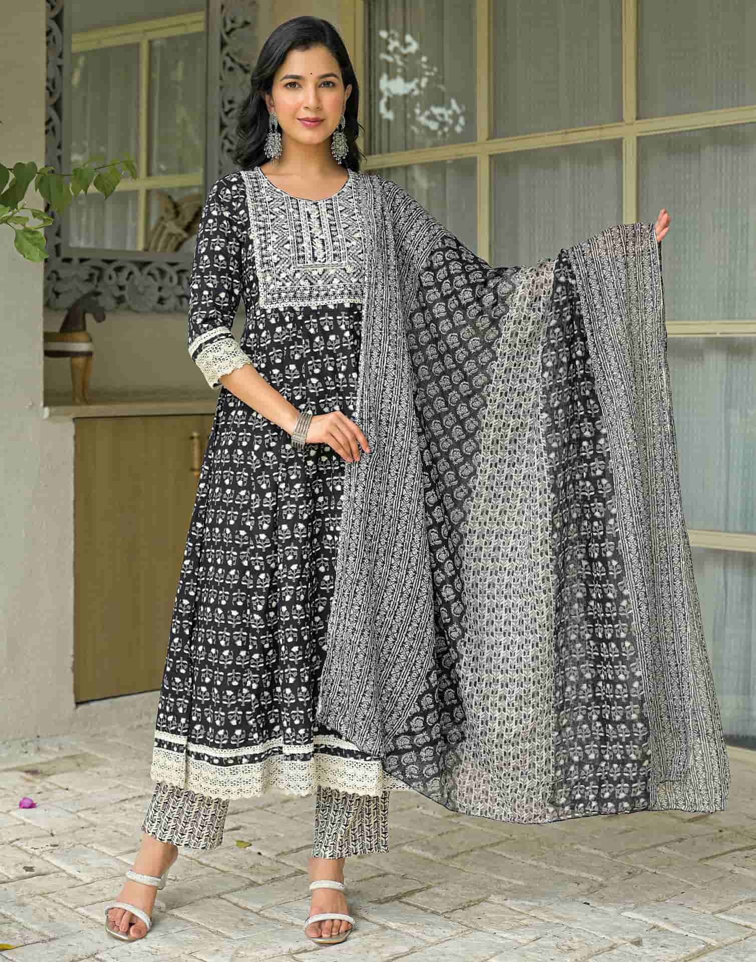 Cotton Embroidered Anarkali Kurta with Pant & Dupatta