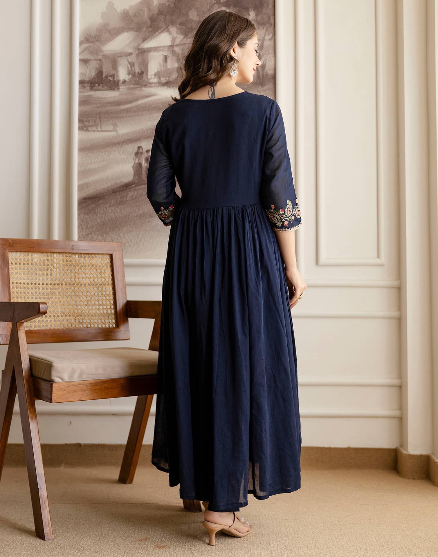 Cotton Embroidered Anarkali Kurta with Pant & Dupatta