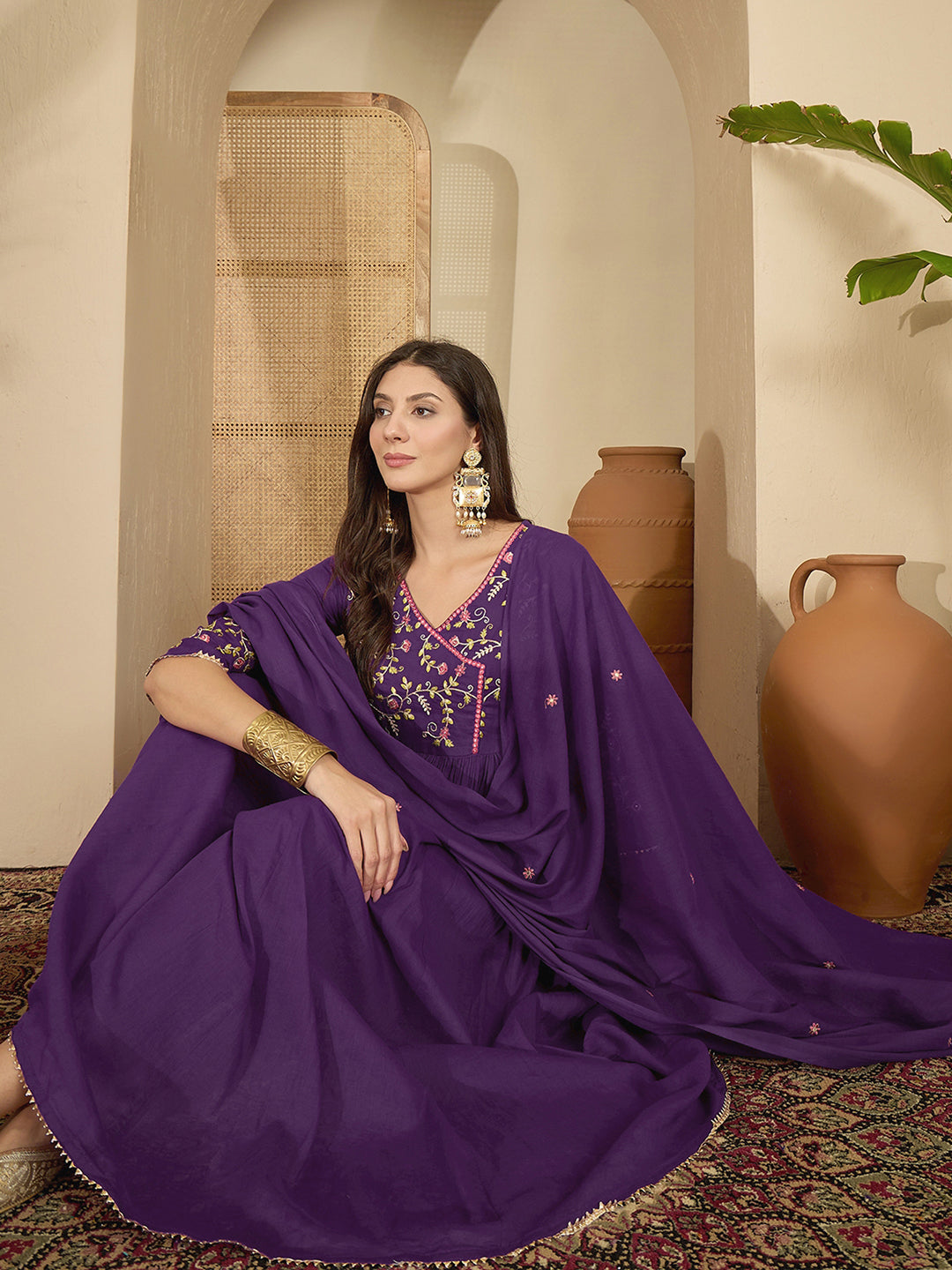 Cotton Embroidered Anarkali Kurta with Pant & Dupatta