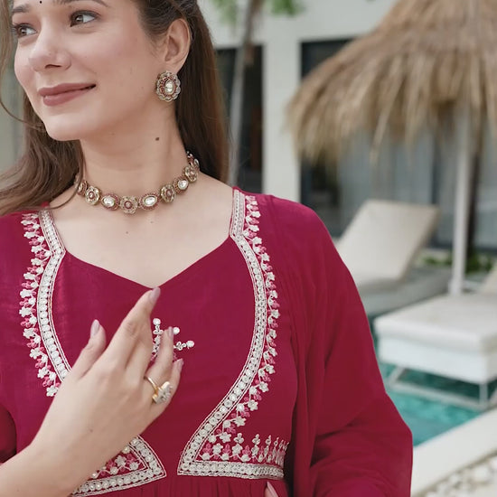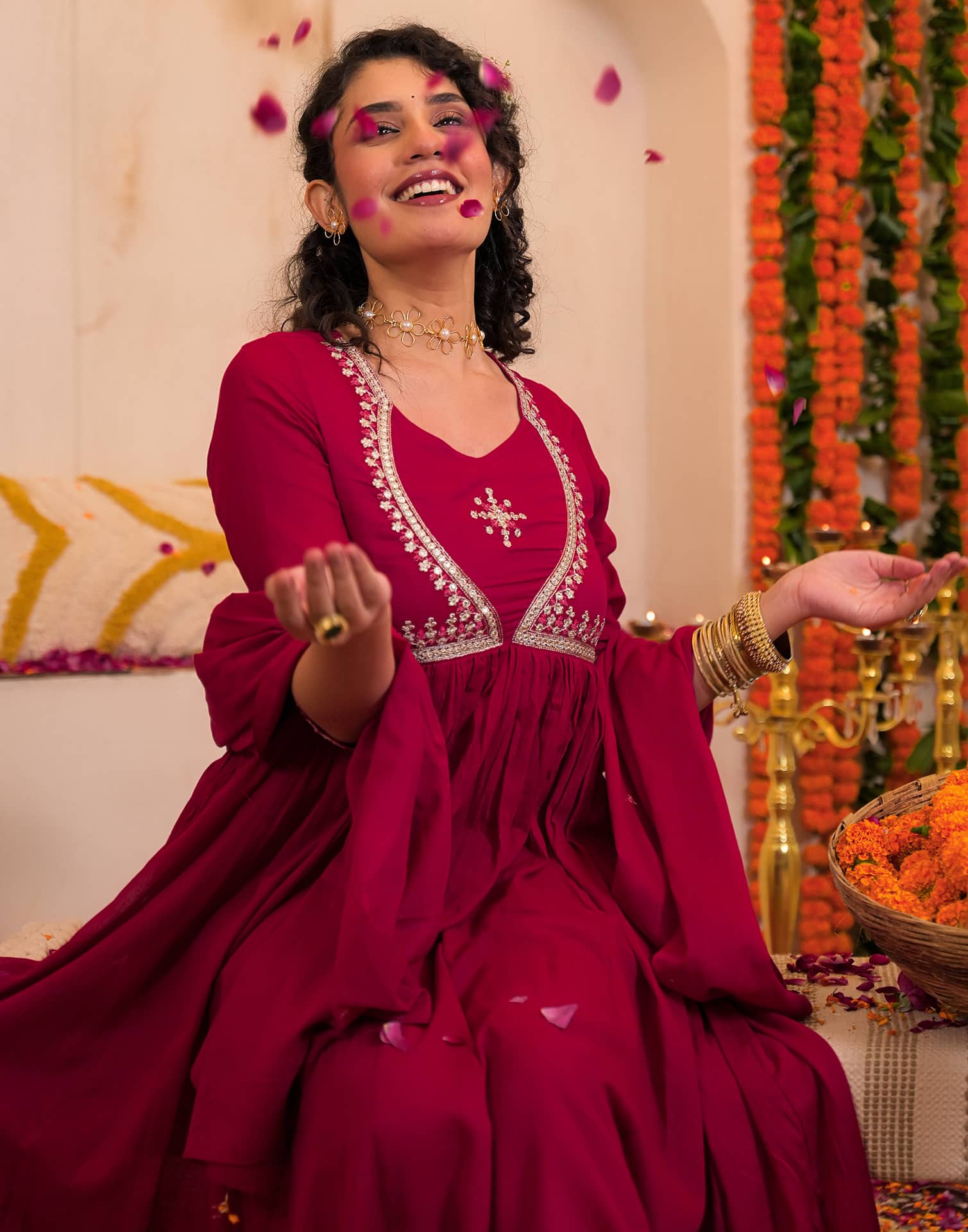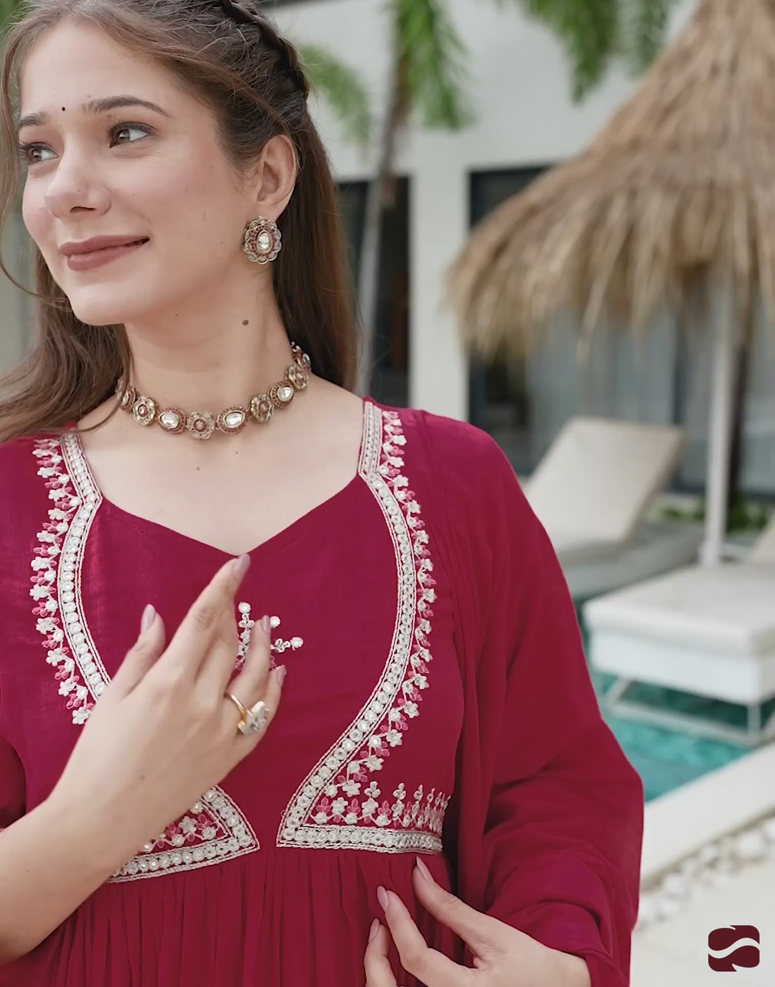 Crafted in Cotton with exquisite Embroidery And Mirror Work, this Red kurta set is an essential for your ethnic wardrobe. The kurta comes with a Round Neck, paired with Pant and dupatta for a complete look. Ideal for Festive Wear, it ensures all-day comfort and soft & breathable fabric. A perfect choice for festive wear and traditional outfit lovers. Traditional Outfit, Comfortable Wear, Complete Kurta Set.