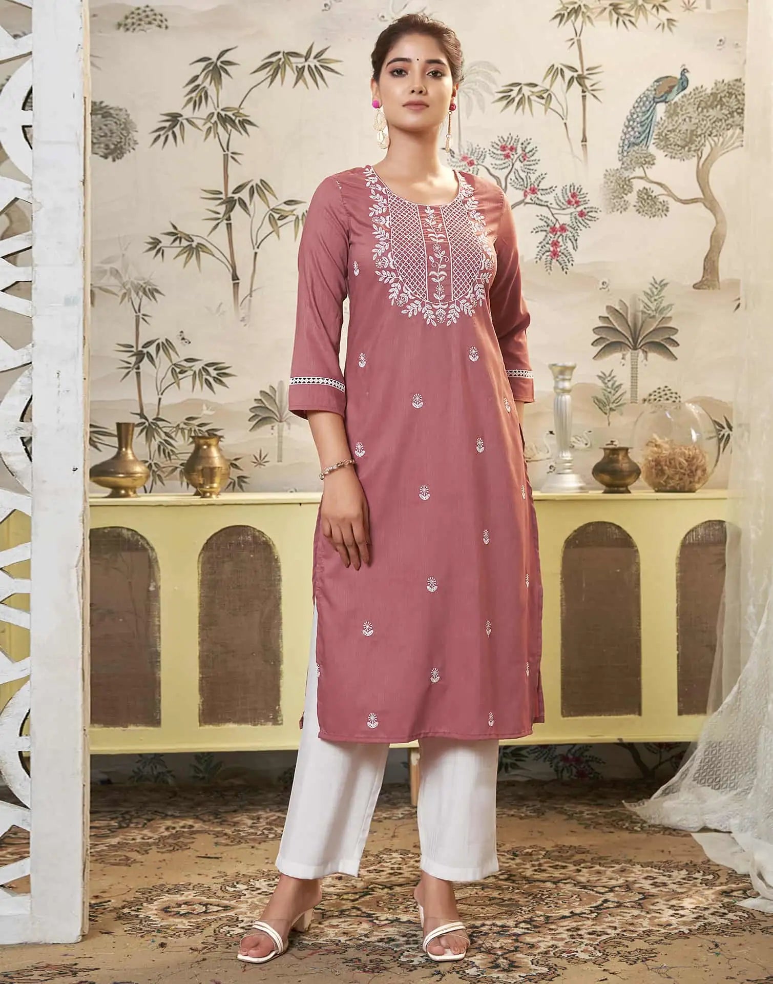 Cotton Embroidered Straight Kurti