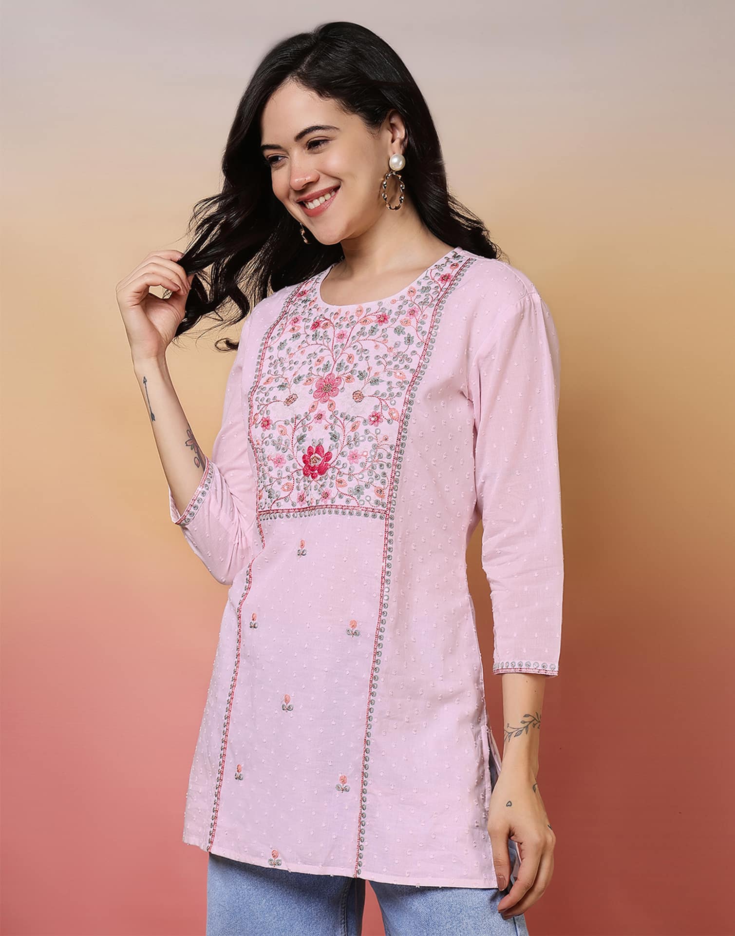Cotton Embroidered Straight Kurti