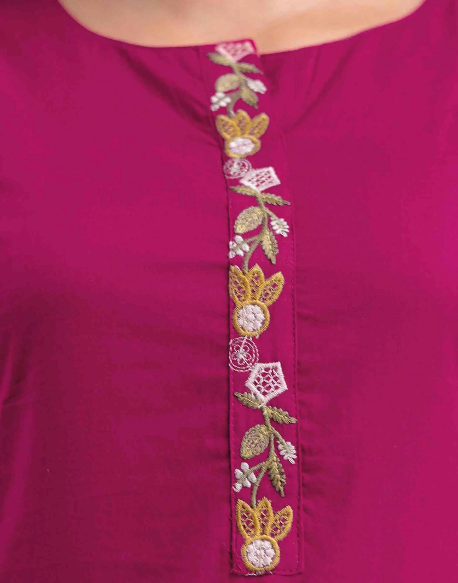 Cotton Embroidered Straight Round Neck Kurta with Pant & Dupatta