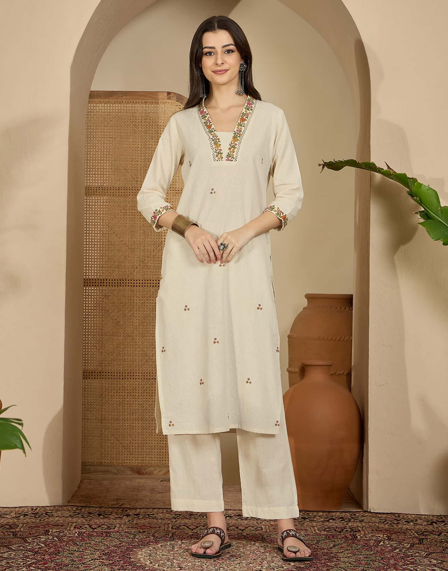 Cotton Flex Straight Embroidery Square Neck Kurta with Pant & Dupatta