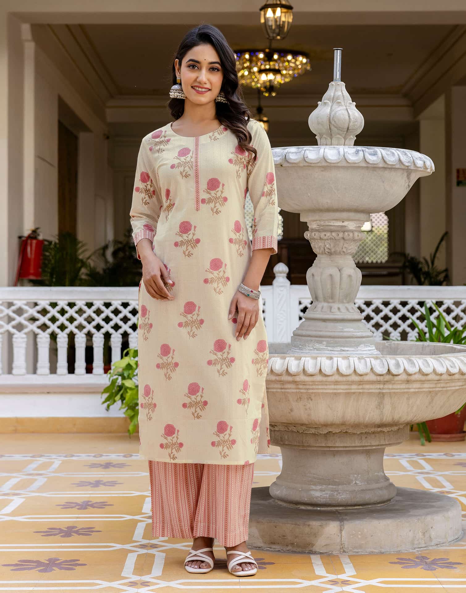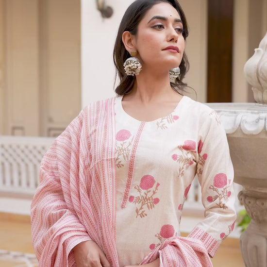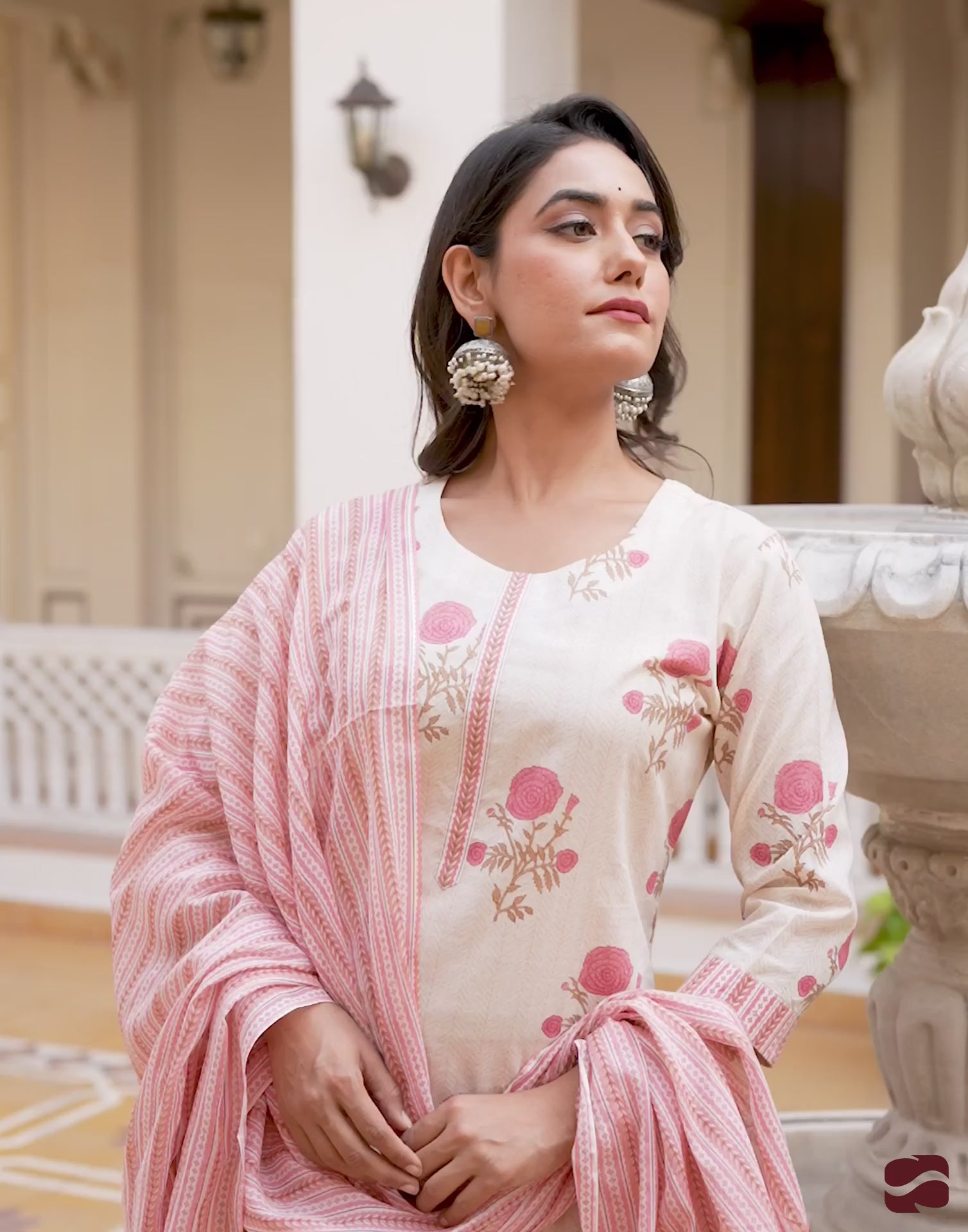Crafted in Cotton with exquisite Printed, this Pink kurta set is an essential for your ethnic wardrobe. The kurta comes with a Round Neck, paired with Pant and dupatta for a complete look. Ideal for Casual Wear, it ensures comfortable wear and lightweight fabric. A perfect choice for festive wear and traditional outfit lovers. Traditional Outfit, Lightweight Fabric, High-quality Fabric.