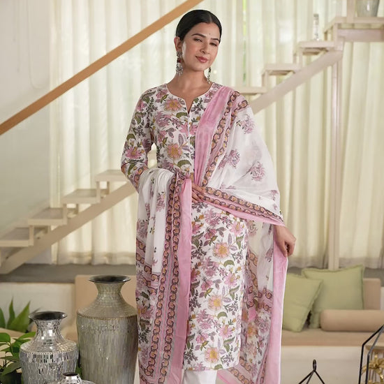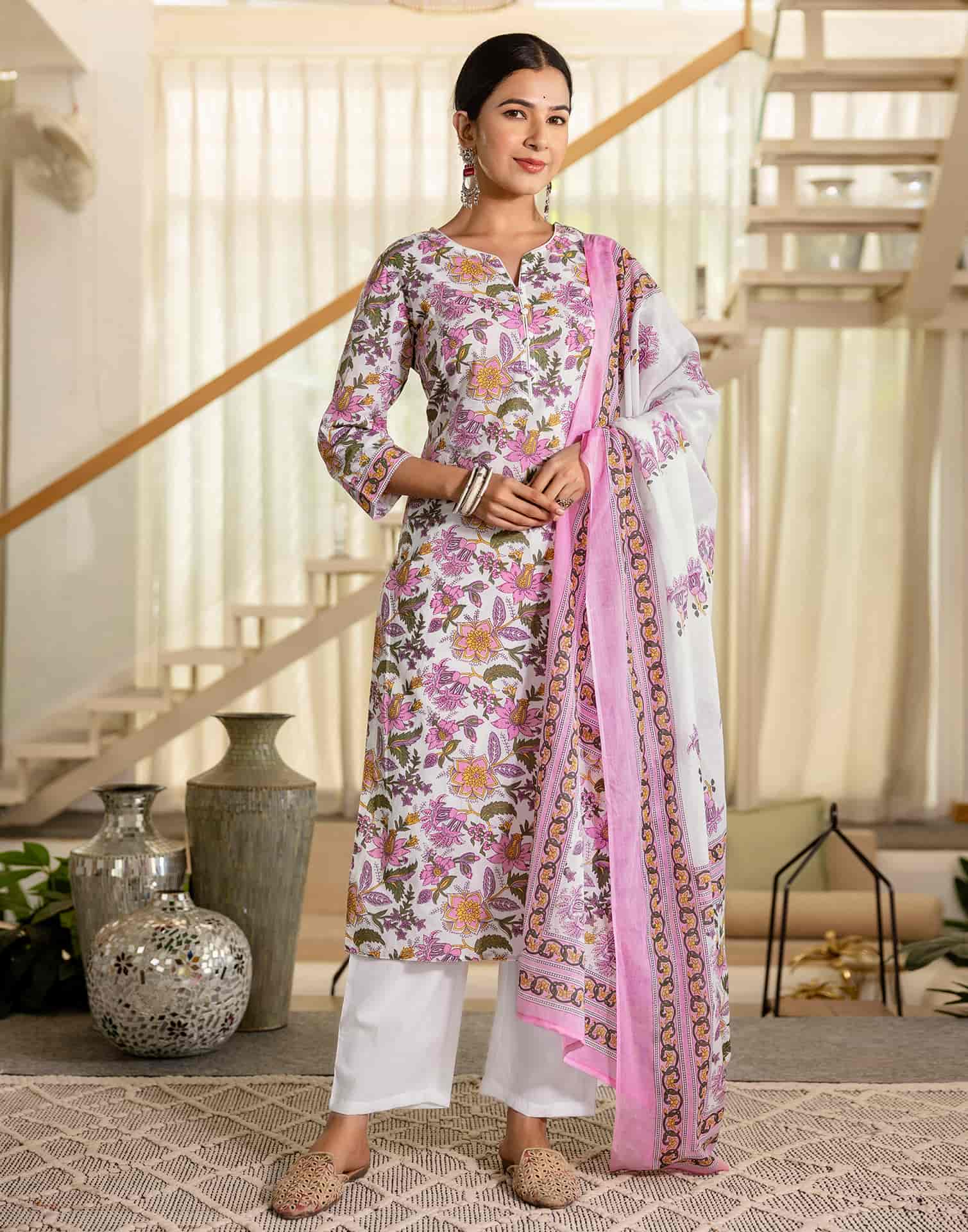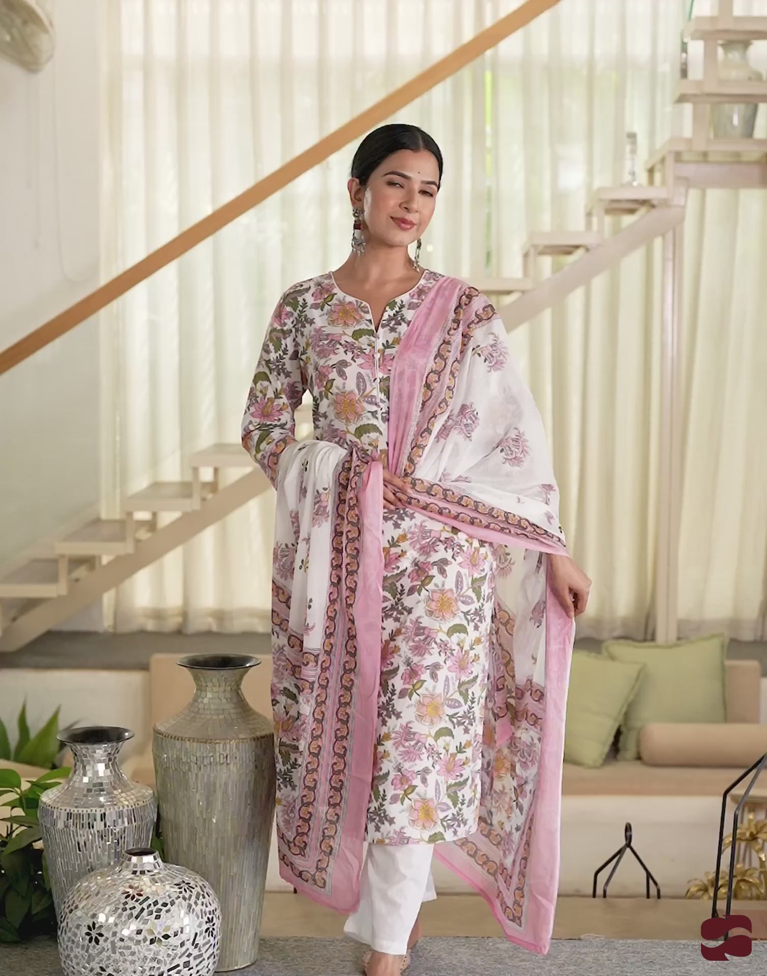 Cotton Printed A-Line Kurta with Pant & Dupatta