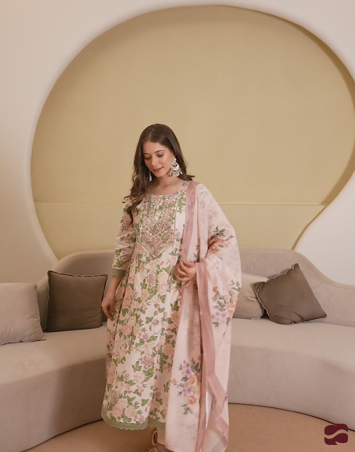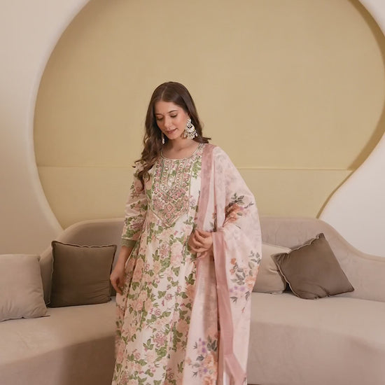 Cotton Printed Anarkali Kurta with Pant & Dupatta