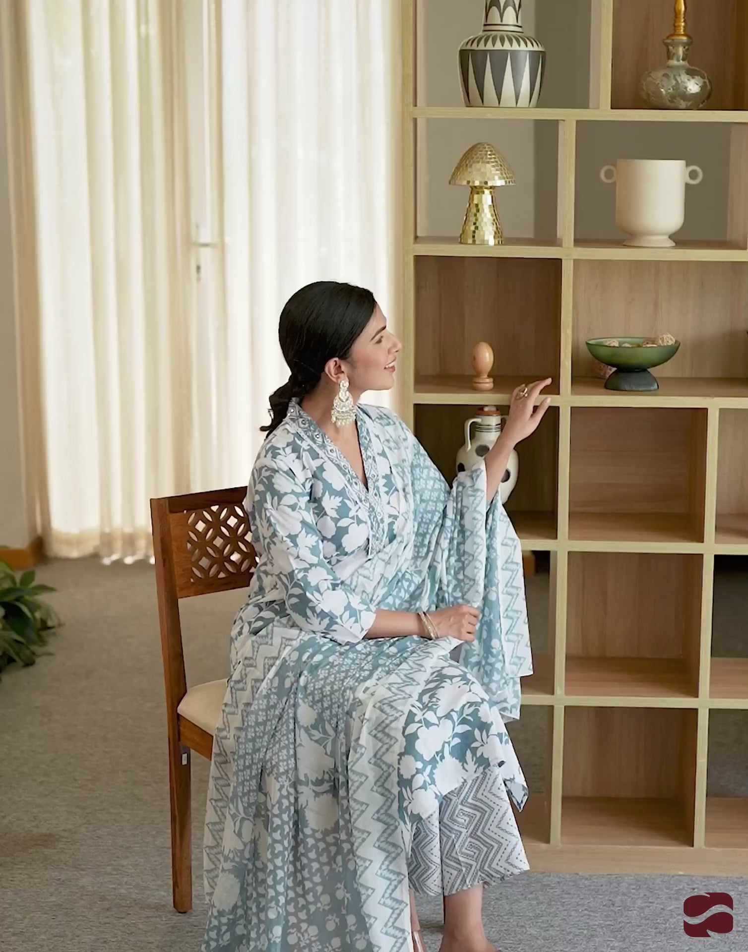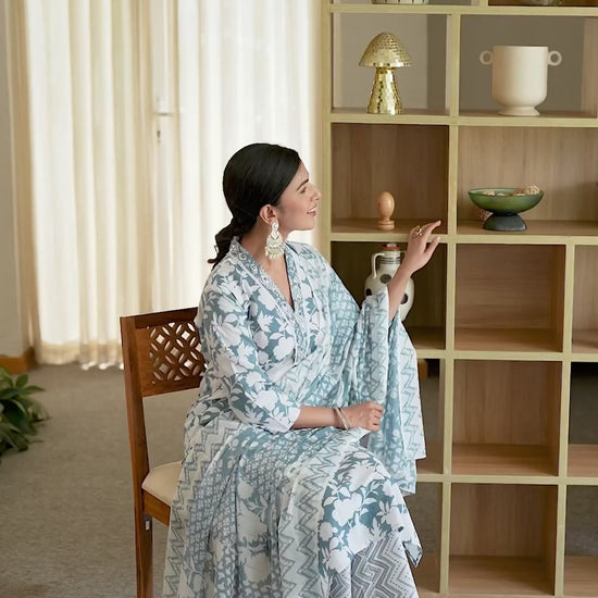 Experience the beauty of tradition with this Grey Cotton kurta set. Adorned with Printed and styled with a V Neck, the kurta exudes sophistication. Complemented with Pant and an elegant dupatta, this complete outfit is ideal for Casual Wear. Crafted in India with high-quality fabric, it ensures comfortable wear and effortless elegance. Complete Kurta Set, Graceful Silhouette, Comfortable Wear.