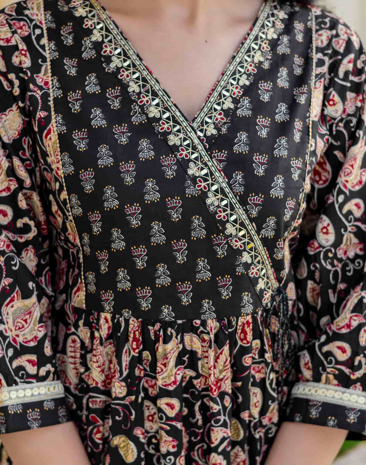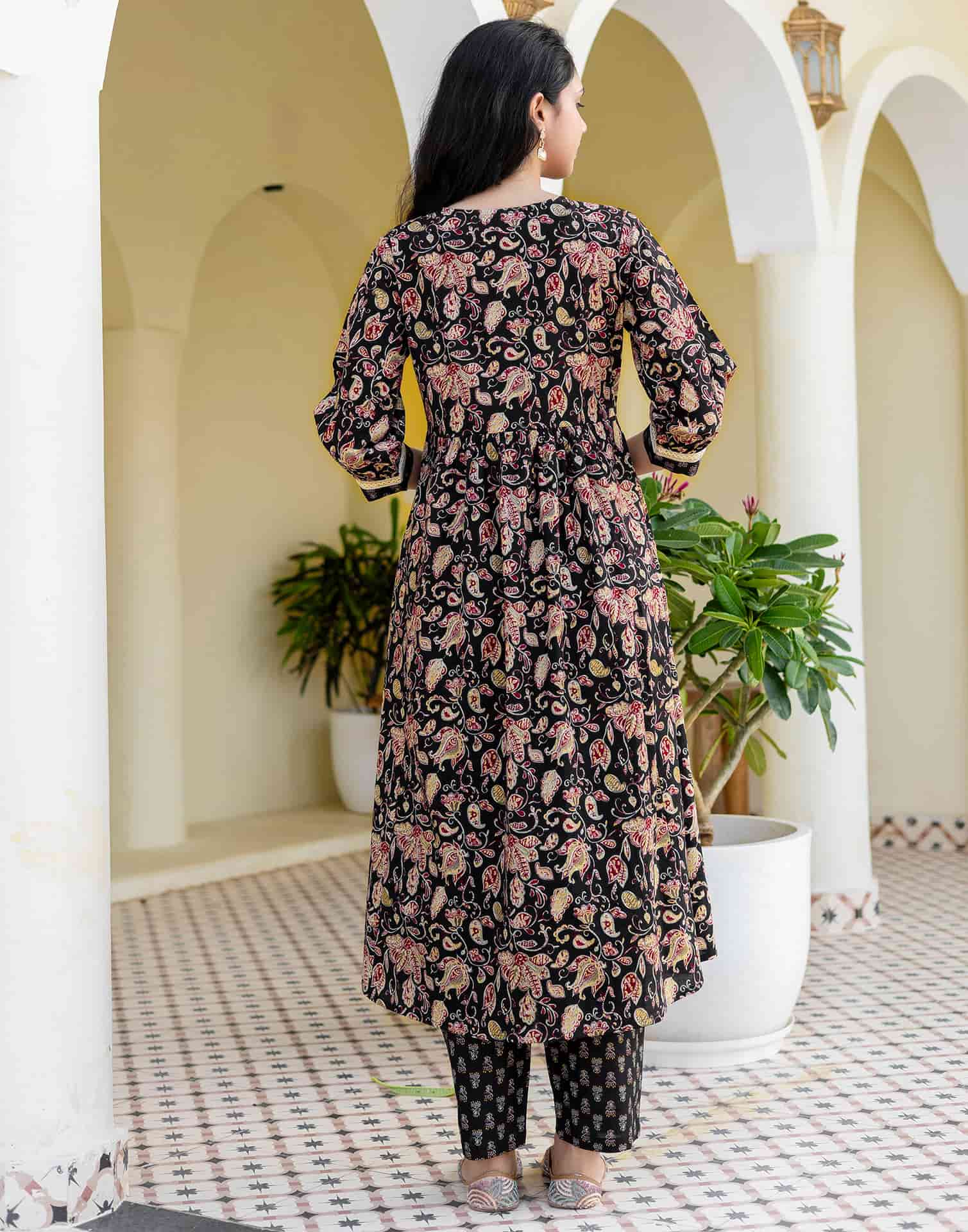 Cotton Printed, Embroidery, Tassels, Anarkali Kurta with Pant & Dupatta