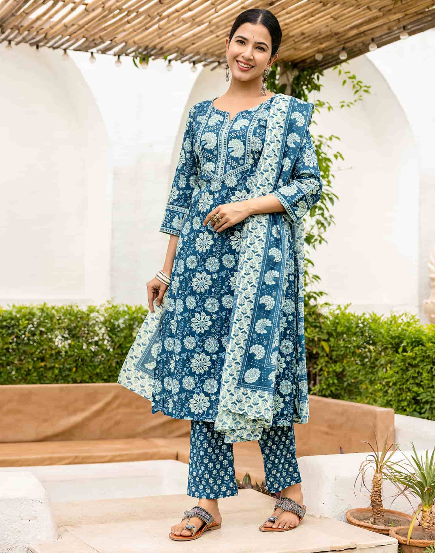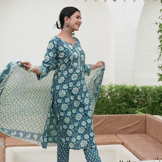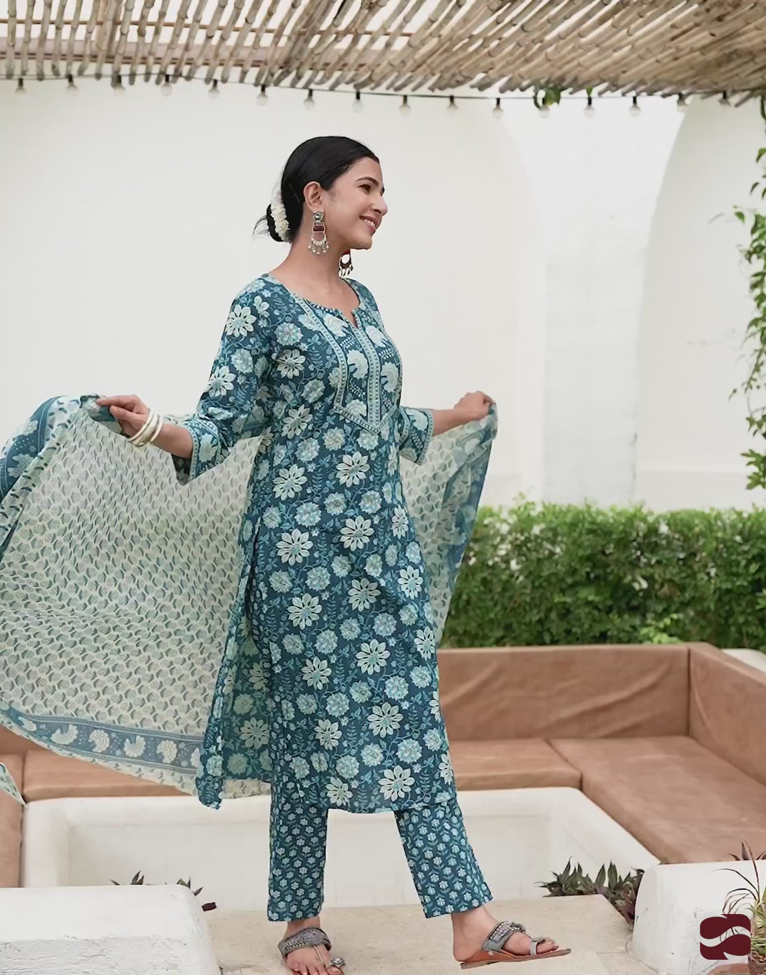 Cotton Printed Straight Kurta with Pant & Dupatta
