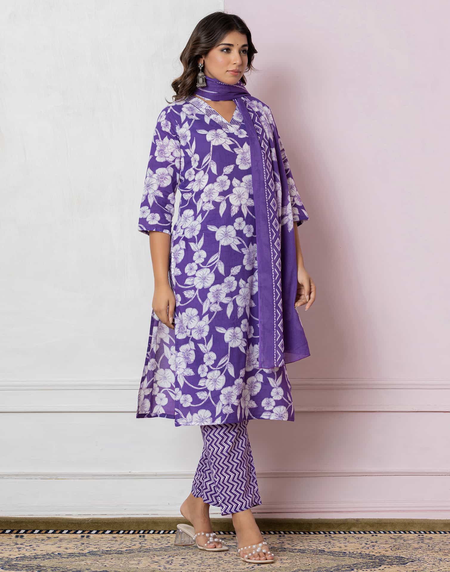 This Purple Cotton kurta set with Floral Printed is crafted for women who love Indian wear with a modern twist. The kurta’s V-Neck and graceful cut enhance its style, while Pant and dupatta complete the ensemble. Designed for Casual Wear, it promises high-quality fabric, comfortable wear, and lasting appeal. Easy to Maintain, High-quality Fabric, Graceful Silhouette.