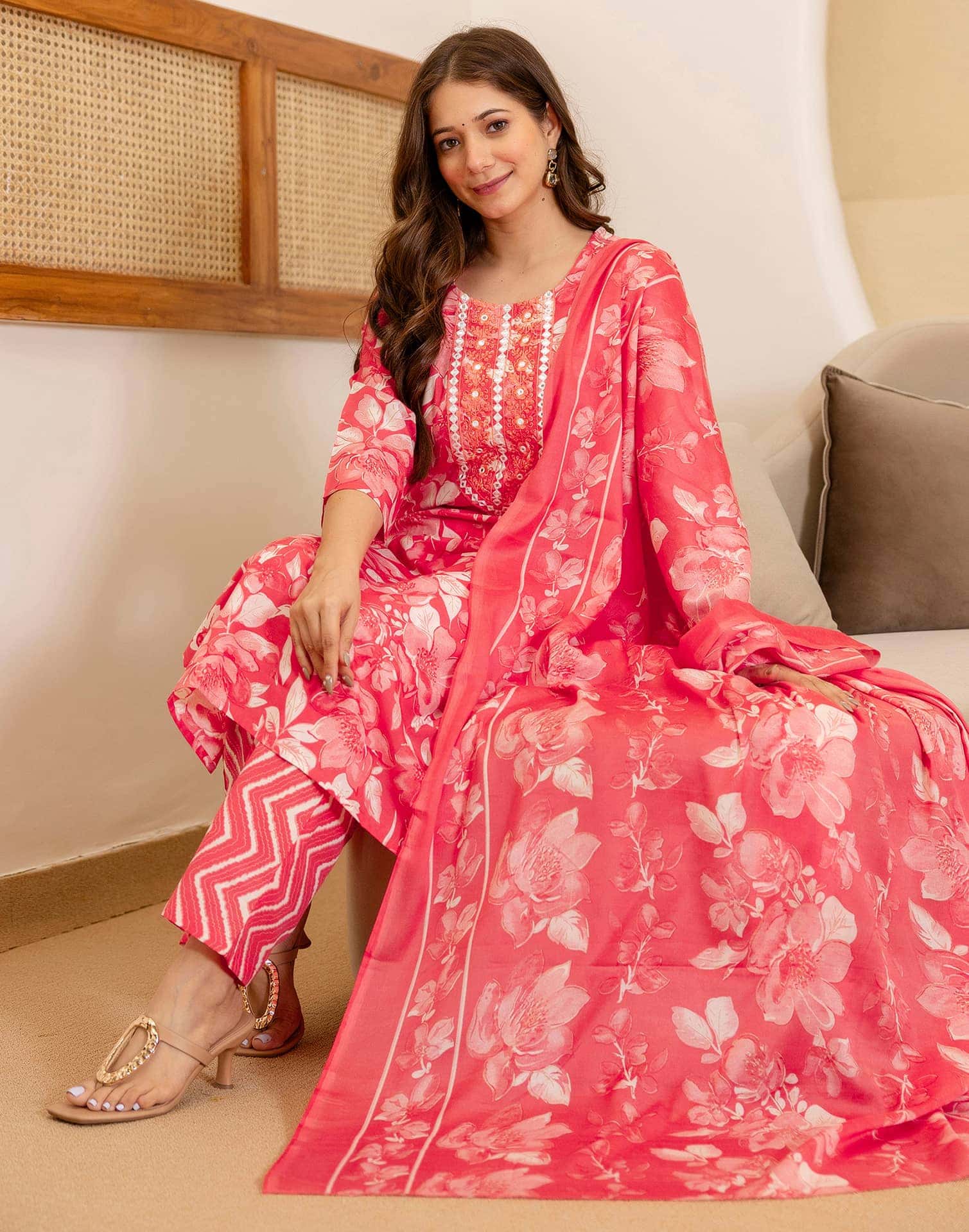 Cotton Printed Straight Kurta with Pant & Dupatta