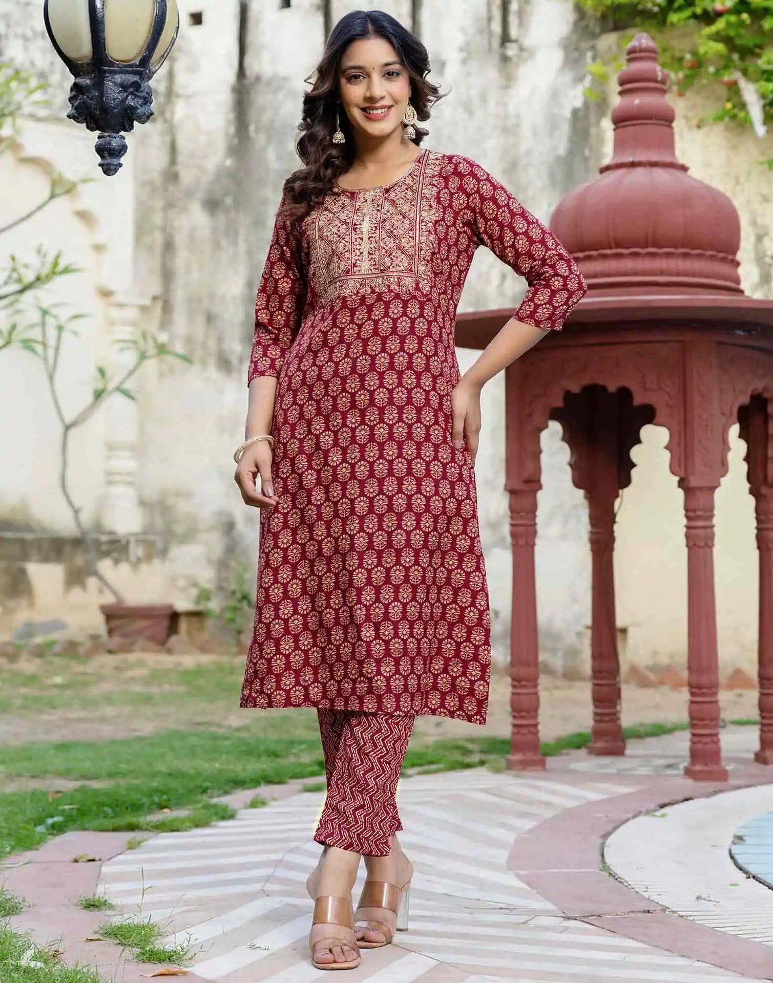 Cotton Printed Straight Kurta with Pant & Dupatta