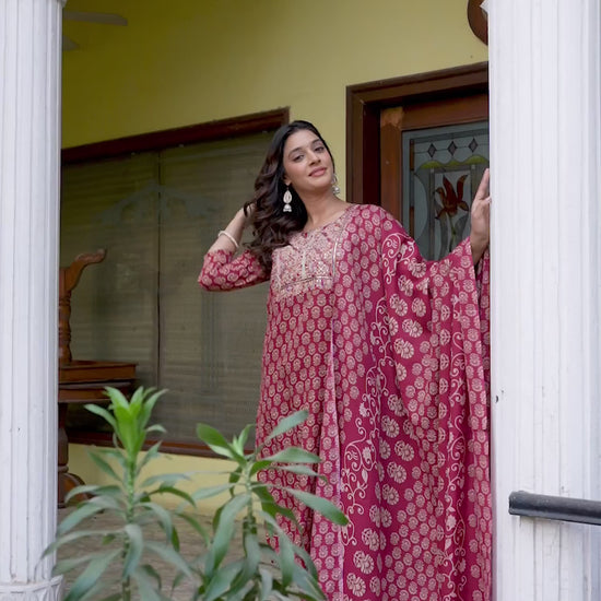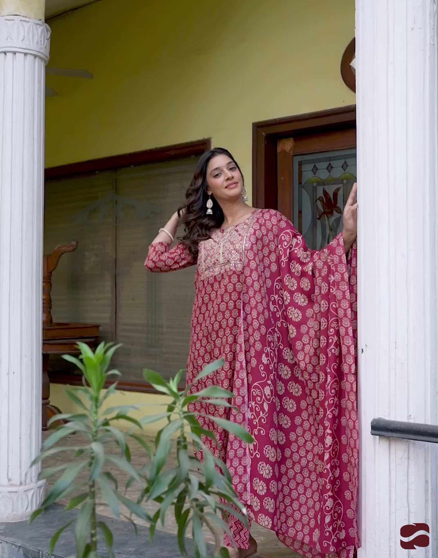 Crafted in Cotton with exquisite Printed, this Maroon kurta set is an essential for your ethnic wardrobe. The kurta comes with a Round Neck, paired with Pant and dupatta for a complete look. Ideal for Casual Wear, it ensures all-day comfort and soft & breathable fabric. A perfect choice for festive wear and traditional outfit lovers. Easy to Maintain, Lightweight Fabric, Premium Fabric.