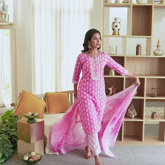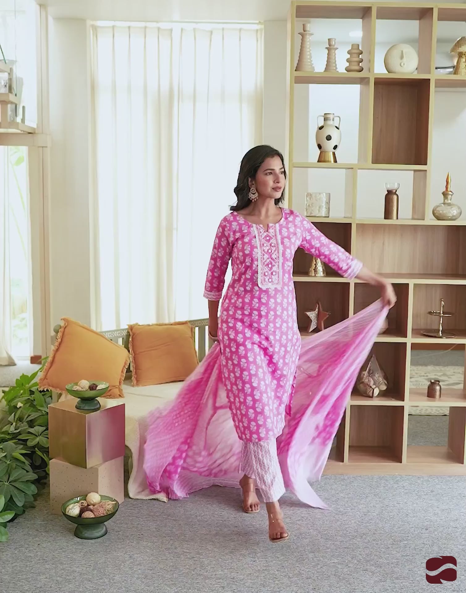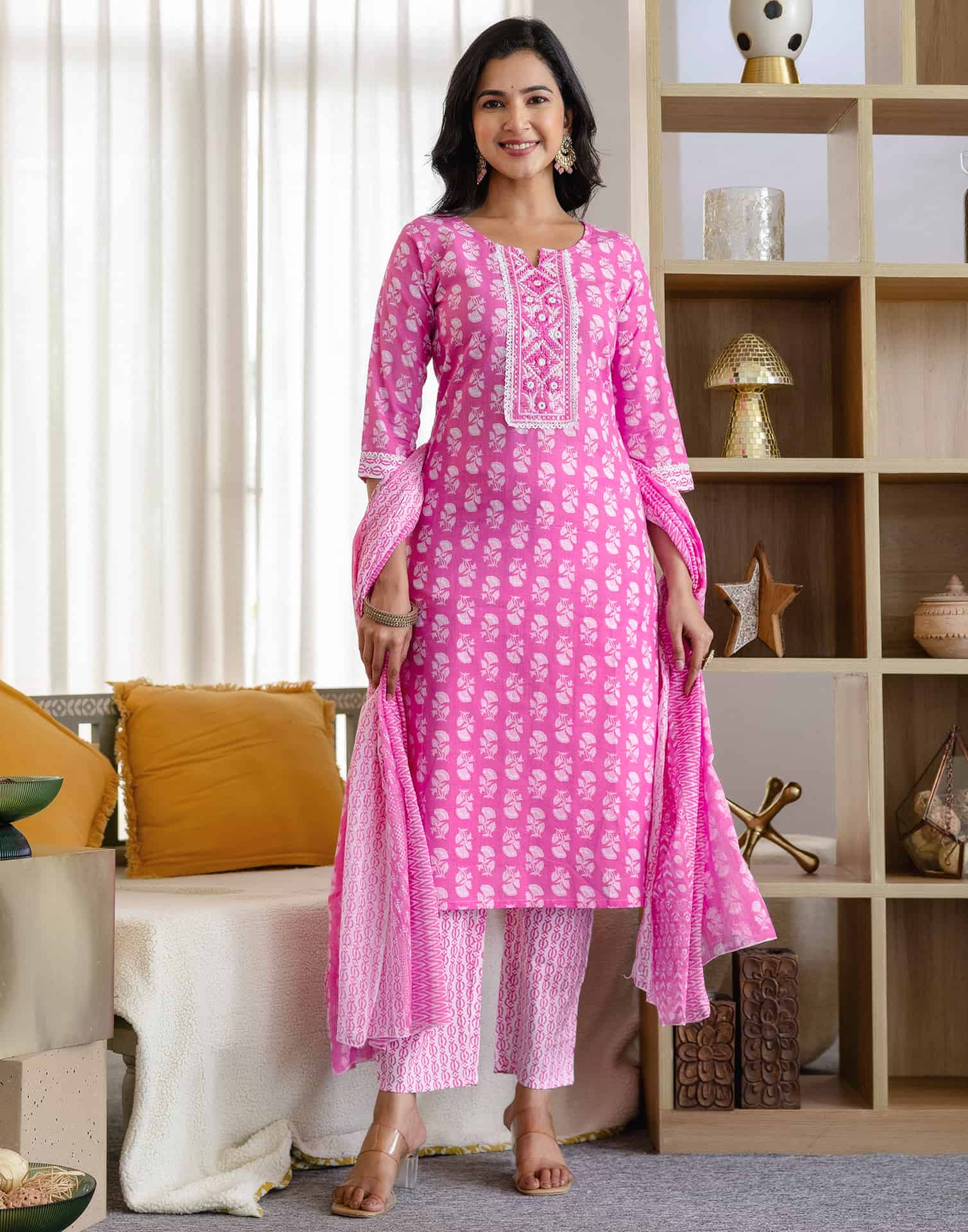 Cotton Printed Straight Kurta with Pant & Dupatta