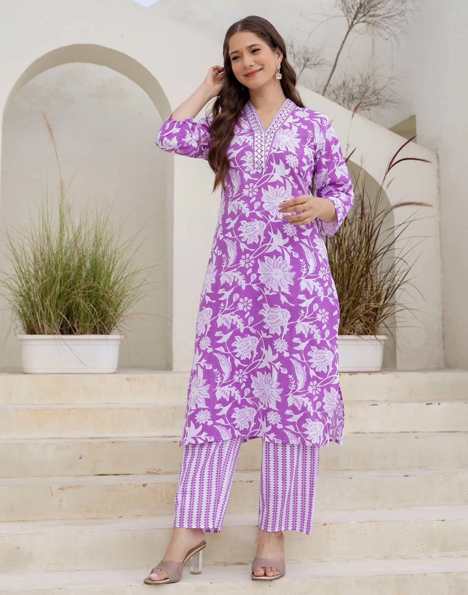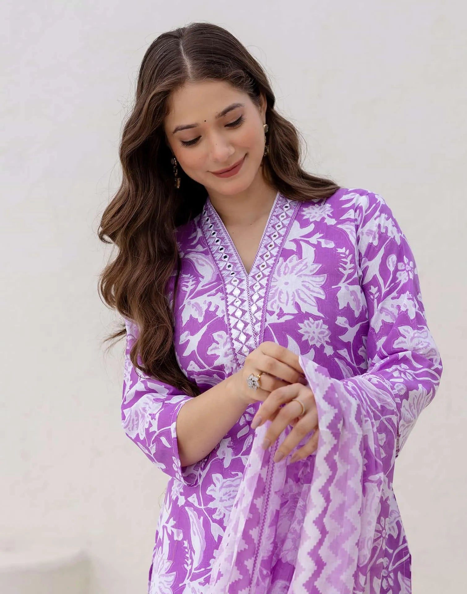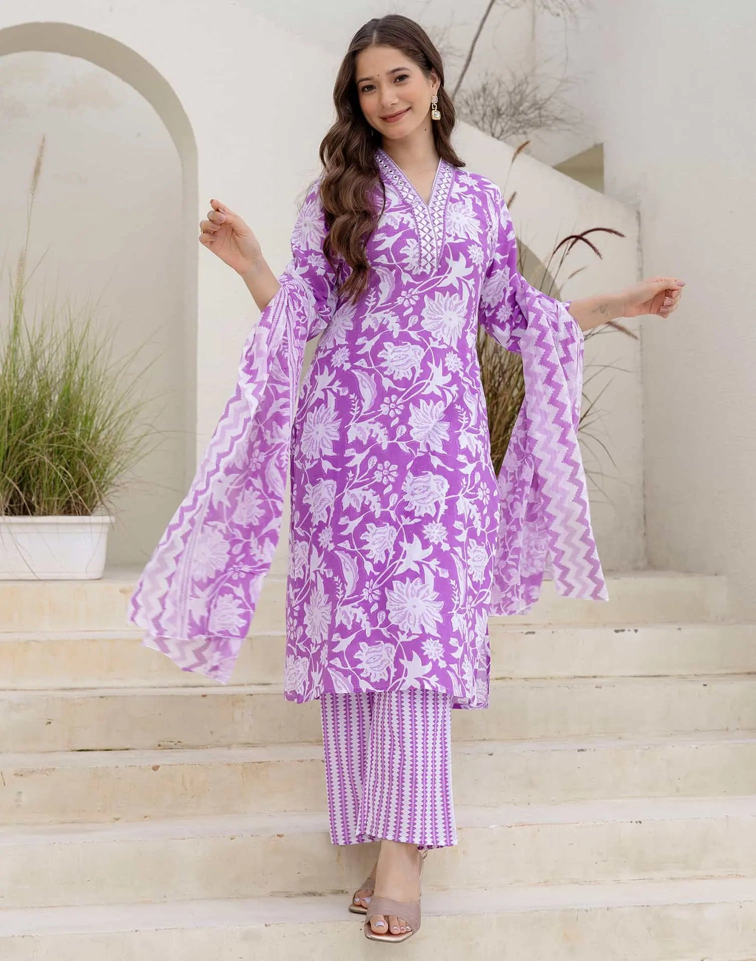 Cotton Printed Straight Kurta with Pant & Dupatta