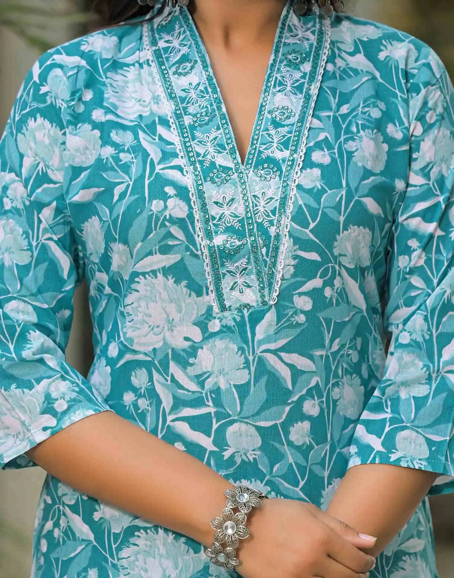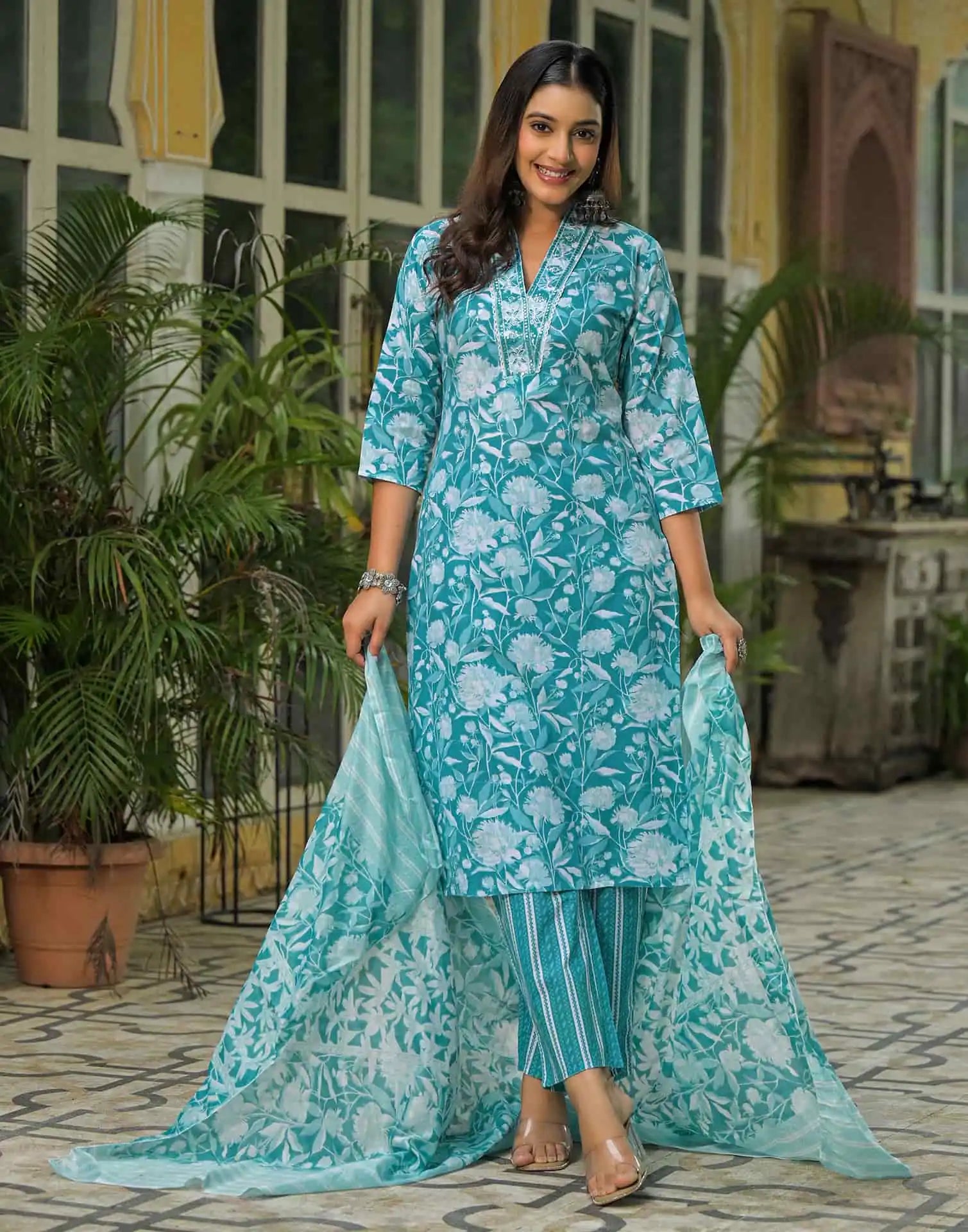 Cotton Printed Straight Kurta with Pant & Dupatta