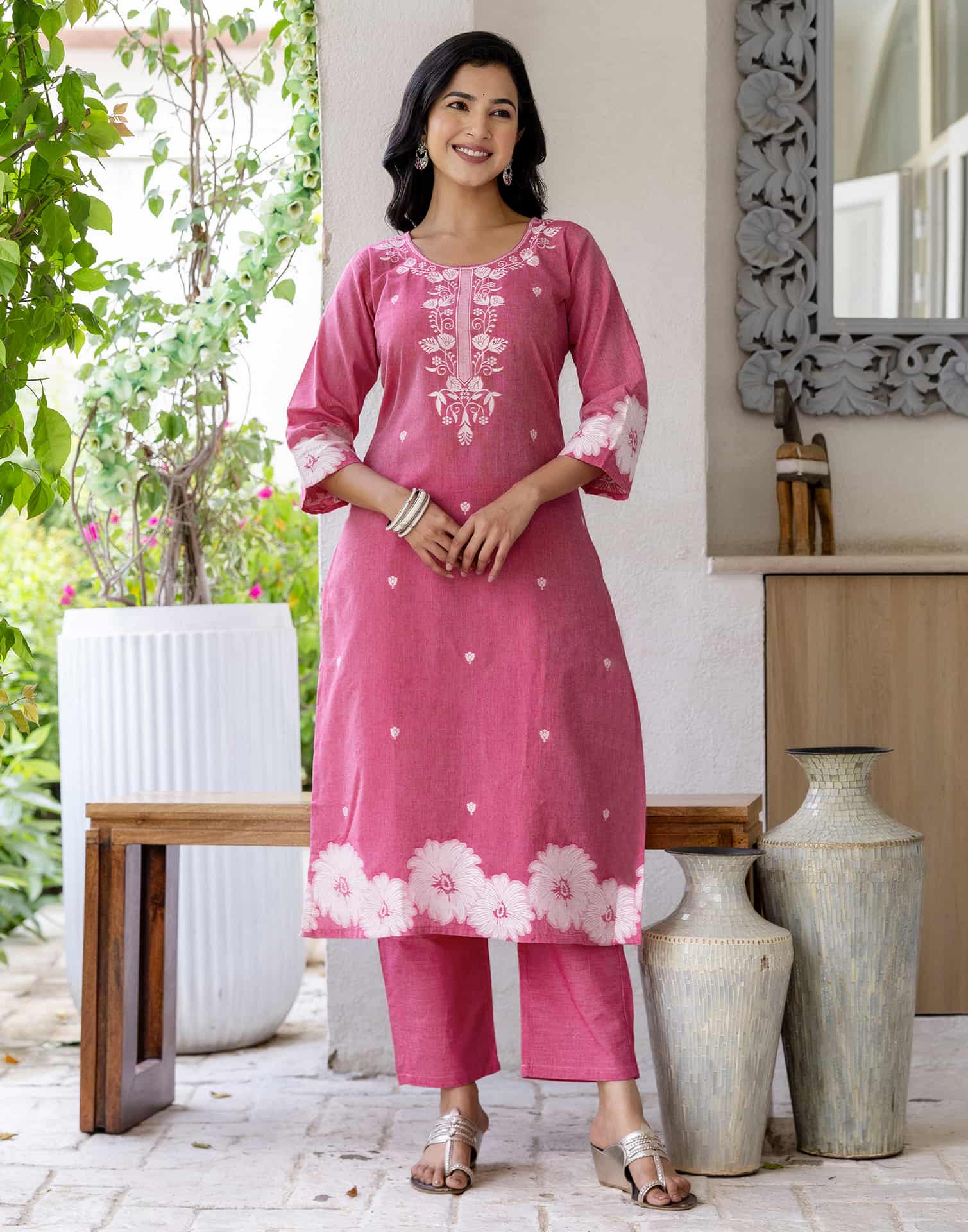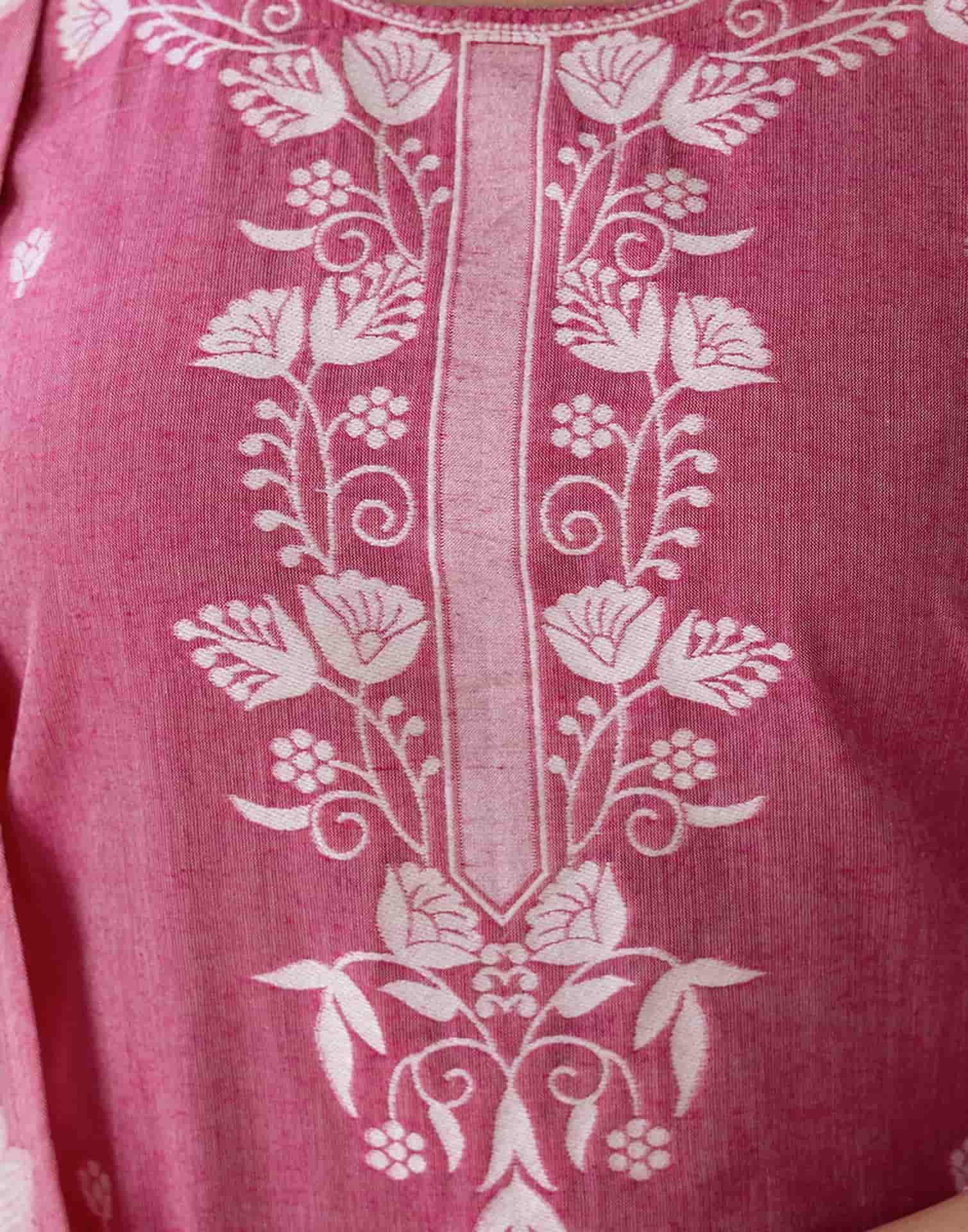 Cotton Straight Woven Design Round Neck Kurta with Pant & Dupatta