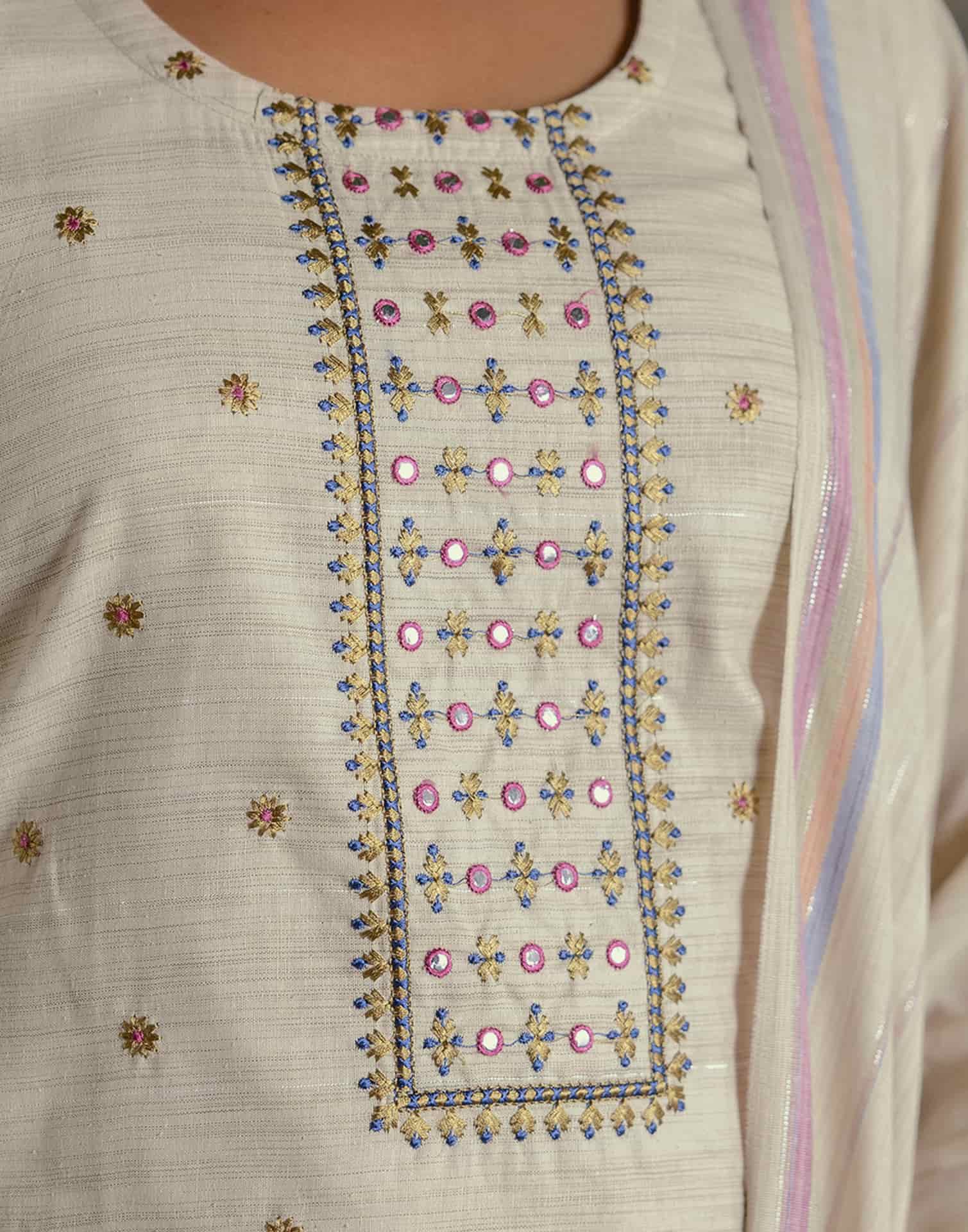 Cotton Weaving and Embroidery A-Line Kurta with Pant & Dupatta