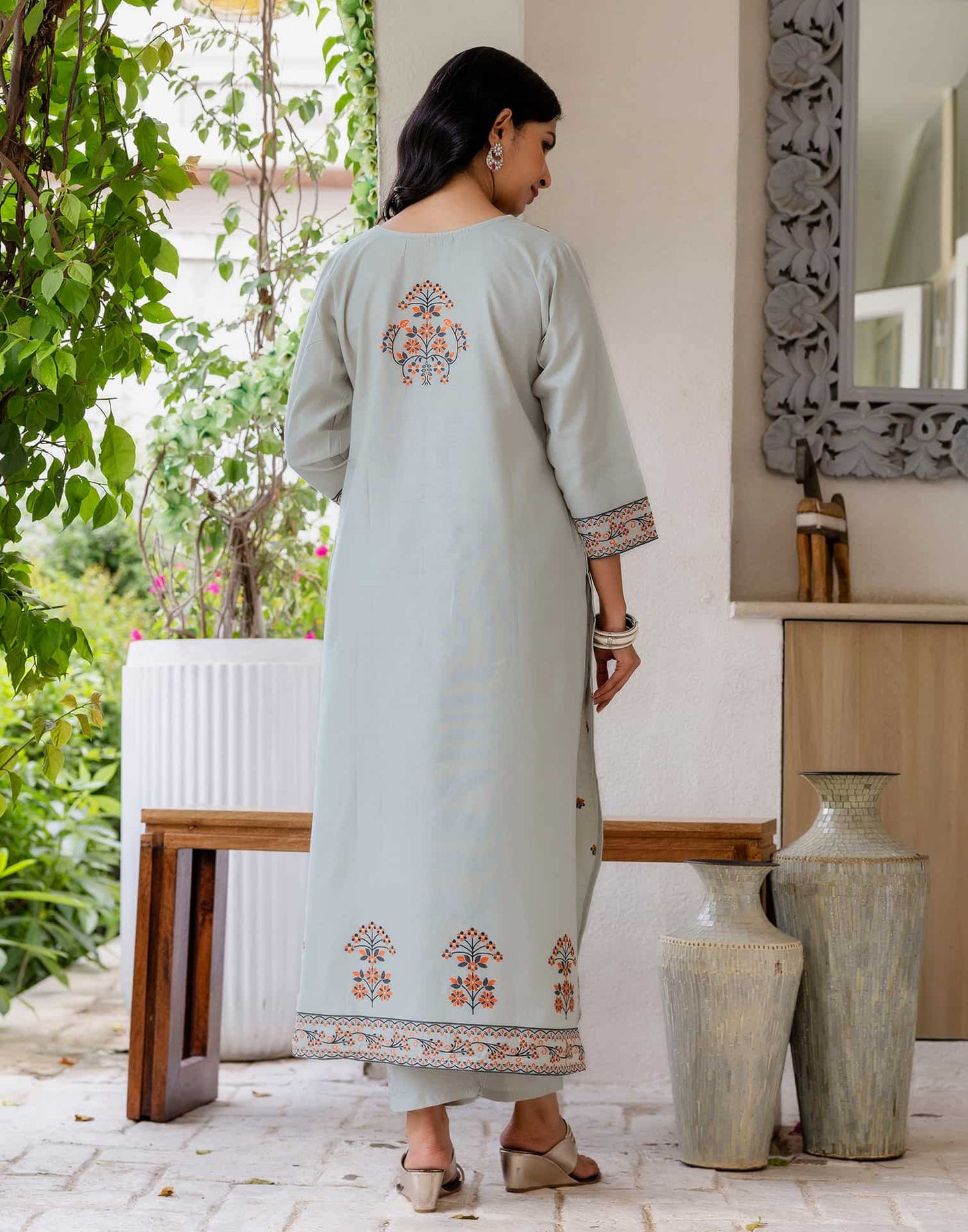 Crafted in Cotton with exquisite Weaving, this Grey kurta set is an essential for your ethnic wardrobe. The kurta comes with a Round Neck, paired with Pant and dupatta for a complete look. Ideal for Festive Wear, it ensures ease of movement and soft & breathable fabric. A perfect choice for festive wear and traditional outfit lovers. Made in India, All-day Comfort, High-quality Fabric.
