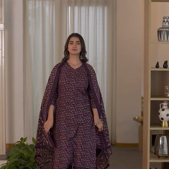 This Dark Purple Cotton kurta set with Floral Printed is crafted for women who love Indian wear with a modern twist. The kurta’s V Neck and graceful cut enhance its style, while Pant With Pocket and dupatta complete the ensemble. Designed for Casual Wear, it promises high-quality fabric, comfortable wear, and lasting appeal. All-day Comfort, Elegant Dupatta, Soft & Breathable Fabric.