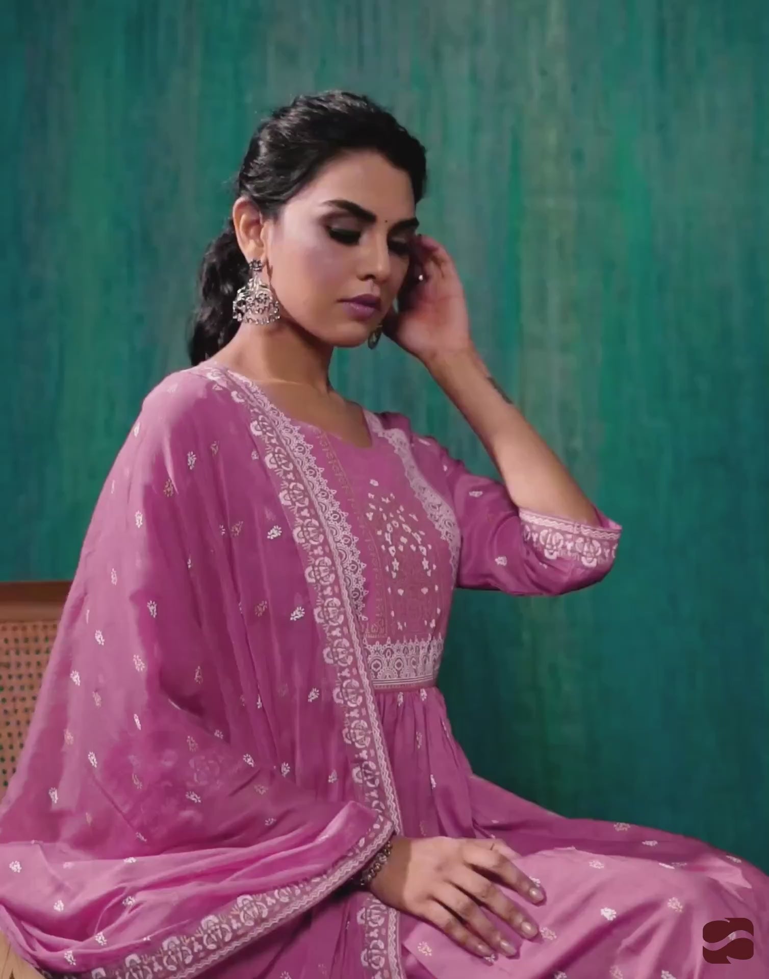 Experience the beauty of tradition with this Dusty Pink Chinnon kurta set. Adorned with Pigment Print and styled with a Round Neck, the kurta exudes sophistication. Complemented with Pant and an elegant dupatta, this complete outfit is ideal for Traditional Wear. Crafted in India with lightweight fabric, it ensures ease of movement and effortless elegance. Ease of Movement, Traditional Outfit, Premium Fabric.