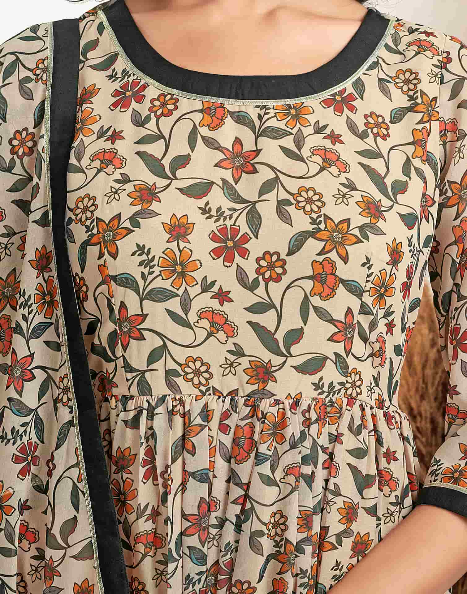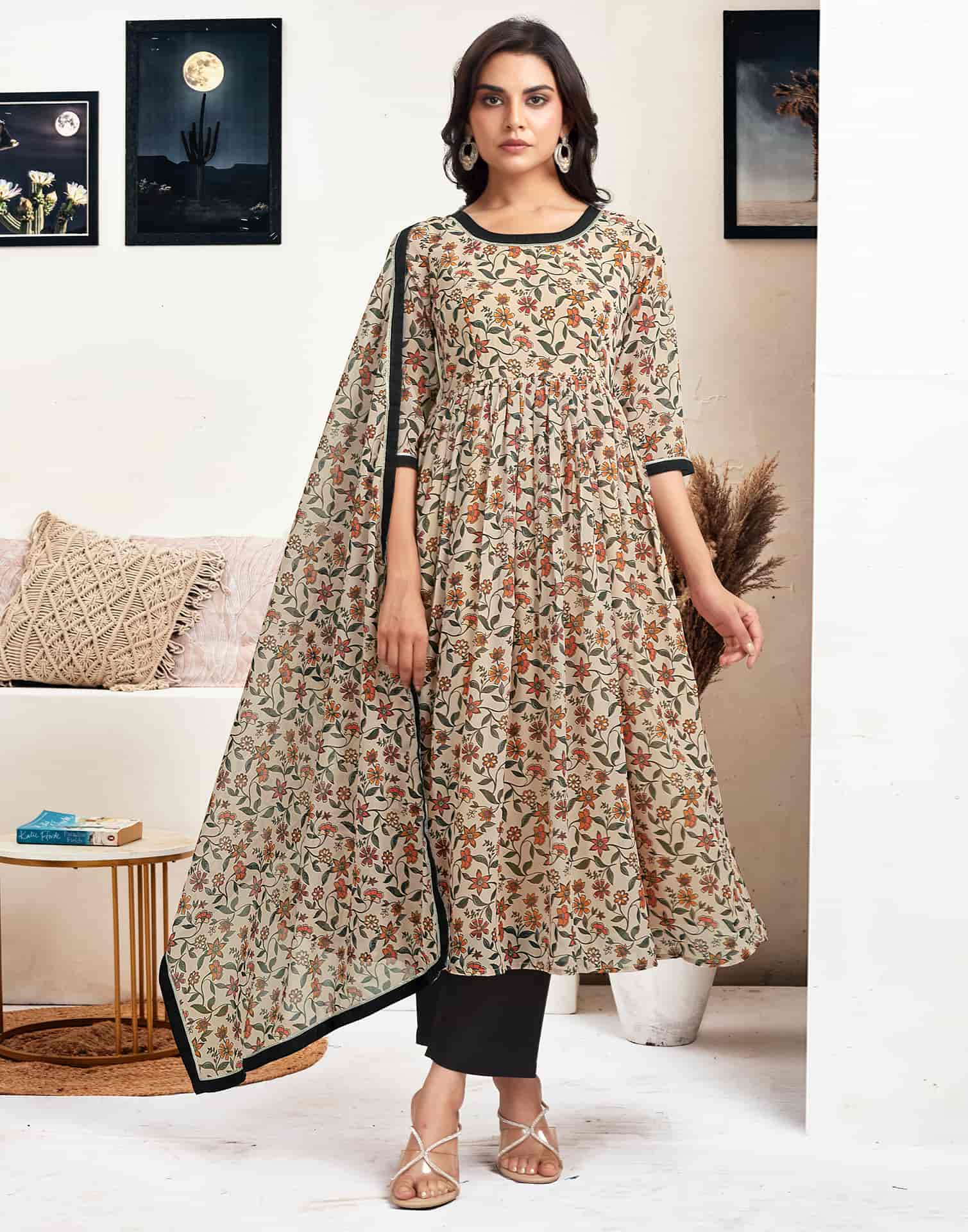 Georgette Printed Flared Kurta with Pant & Dupatta