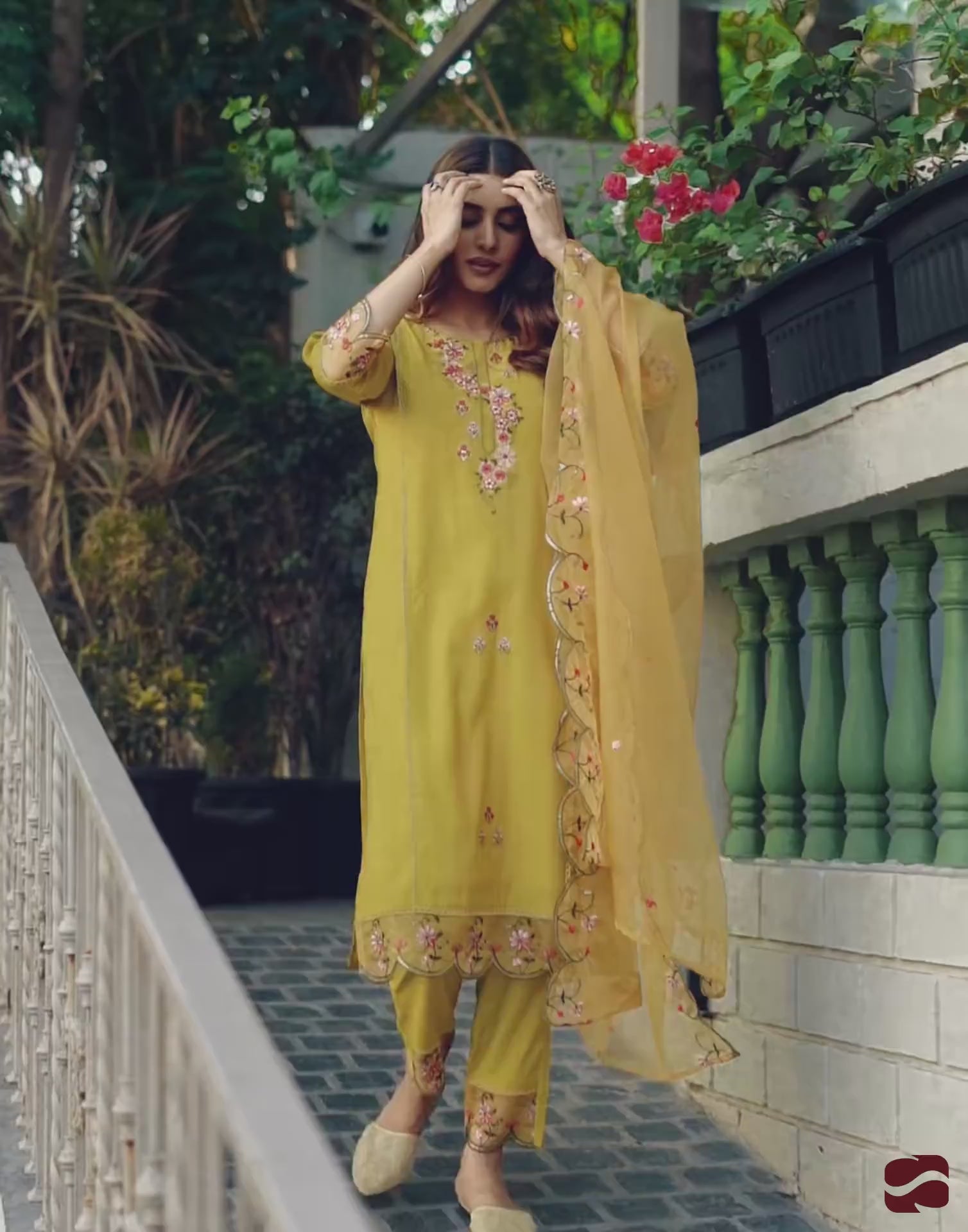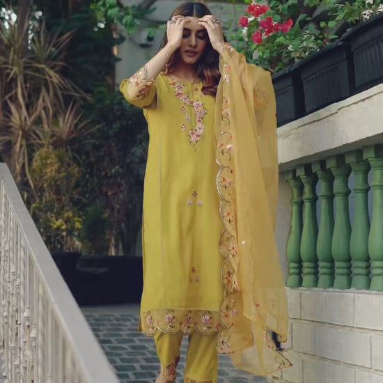 This Mustard Yellow Silk Blend kurta set with Plain is crafted for women who love Indian wear with a modern twist. The kurta’s Round Neck and graceful cut enhance its style, while Pant With Pocket and dupatta complete the ensemble. Designed for Festive Wear, it promises lightweight fabric, ease of movement, and lasting appeal. Indian Wear, Kurta with Pant & Dupatta, Elegant Dupatta.