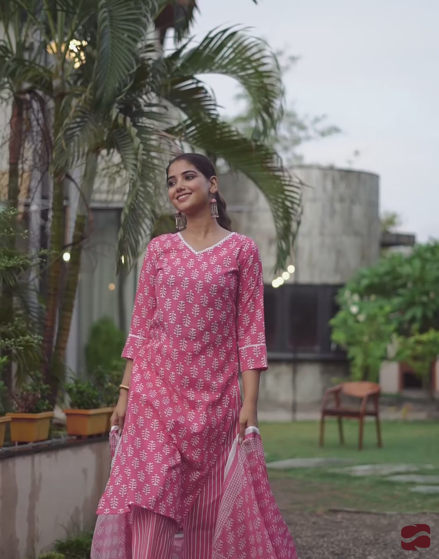 This Pink Cotton kurta set with Printed is crafted for women who love Indian wear with a modern twist. The kurta’s V Neck and graceful cut enhance its style, while Pant With Pocket and dupatta complete the ensemble. Designed for Casual Wear, it promises high-quality fabric, all-day comfort, and lasting appeal. Easy to Maintain, Complete Kurta Set, Casual Wear.