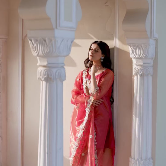 Experience the beauty of tradition with this Rani Pink Shimmer Net kurta set. Adorned with Embroidery And Sequins Work and styled with a Sweetheart Neck, the kurta exudes sophistication. Complemented with Pant With Pocket and an elegant dupatta, this complete outfit is ideal for Party Wear. Crafted in India with premium fabric, it ensures all-day comfort and effortless elegance. Ease of Movement, Ethnic Wear for Women, Indian Wear.