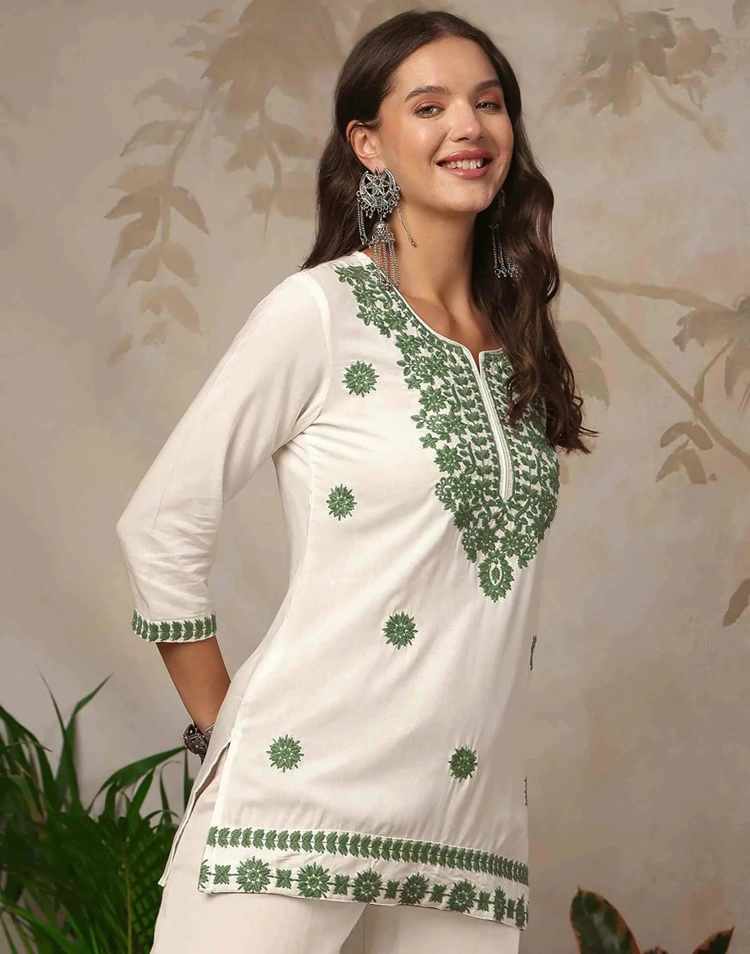 Rayon Chikankari Straight Round Neck Short Kurti