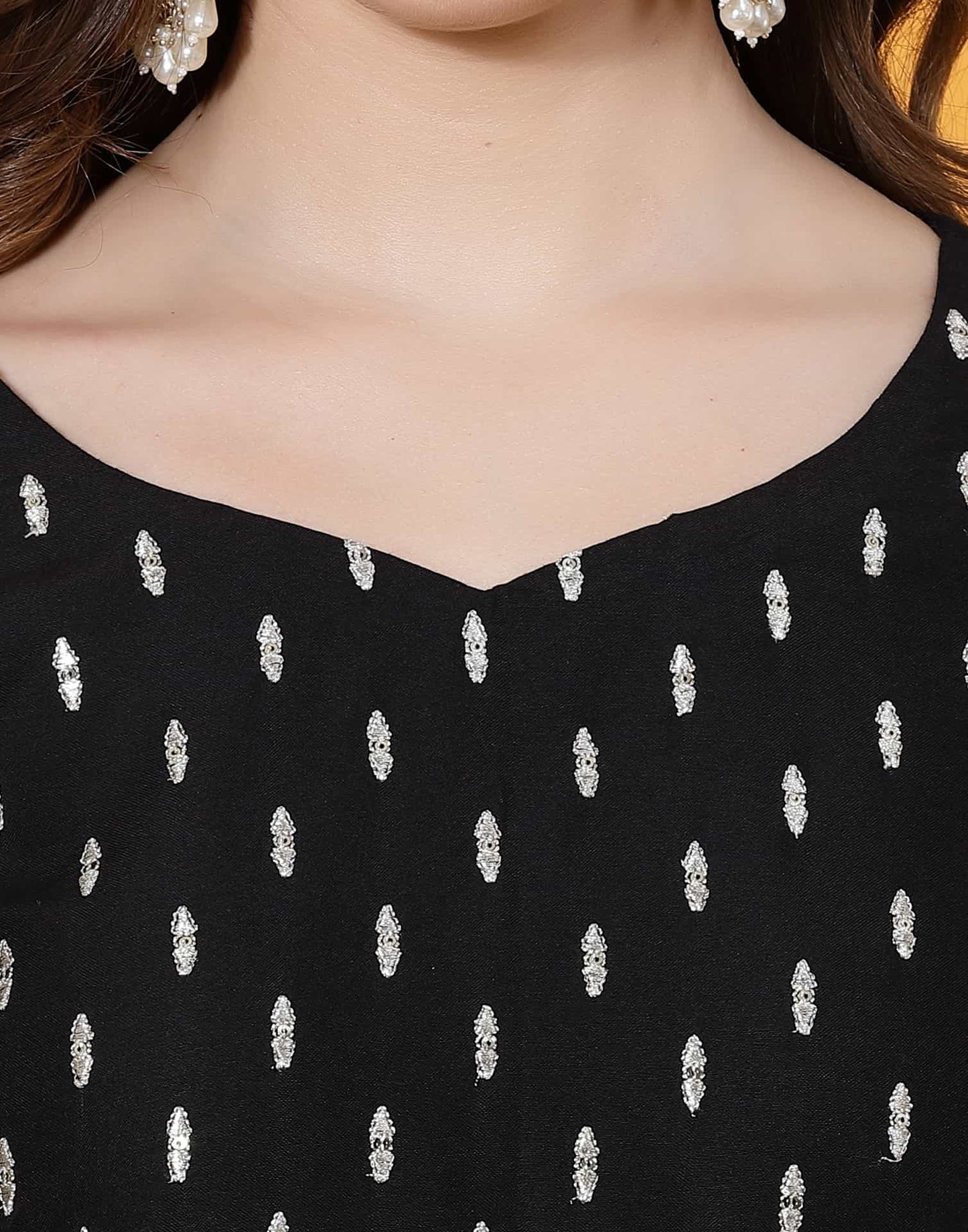 Bring elegance to every occasion with this Black Rayon kurta set. Featuring Embroidery on the kurta and a Sweetheart Neck, it radiates traditional charm. Styled with Patiala and dupatta, this outfit is ideal for Family Function Wear. Its high-quality fabric ensures breathability and comfortable wear, while the dupatta adds a touch of grace. Ethnic Wear for Women, Premium Fabric, Elegant Dupatta.