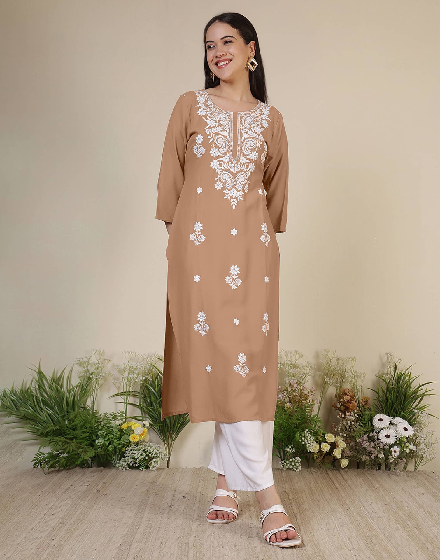 Rayon Embroidered Straight Kurti